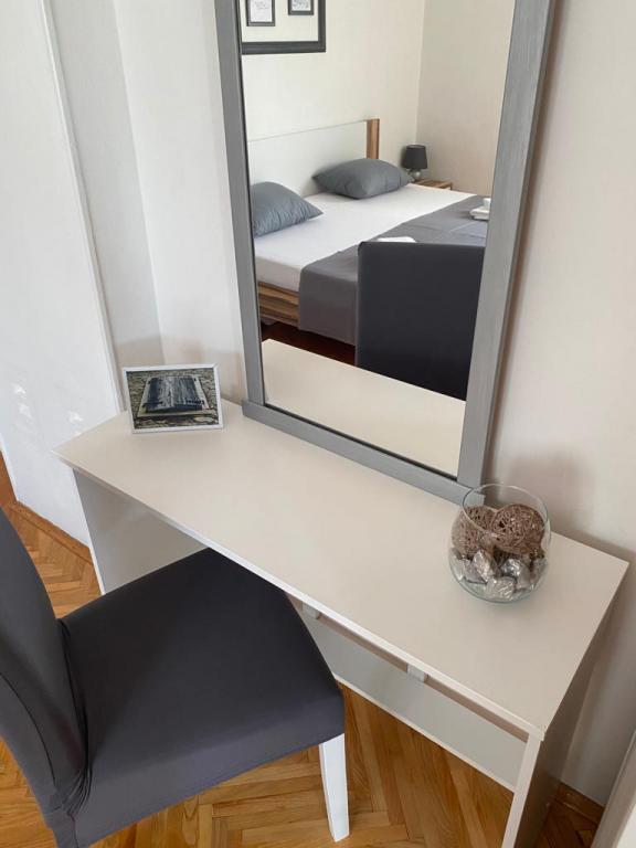 Apartament dla 4-5 osób i apartament dla 2 osób w rodzinnym domu w Dramalj. W apartamencie dla 4 osób goście mają do dyspozycji dwie przestronne sypialnie, kuchnię z jadalnią, łazienkę, balkon oraz taras z widokiem na morze. Apartament posiada Wi-Fi, TV i klimatyzację. Apartament dla 2 osób składa się z sypialni, kuchni, łazienki i tarasu. Apartament posiada Wi-Fi, TV i klimatyzację. Sklep, kawiarnia i kantor znajdują się w bezpośrednim sąsiedztwie obiektu (50m). Obiekt znajduje się 130m od morza, gdzie turyści mają do wyboru plażę betonową, żwirową, piaszczystą lub kamienistą, obiekty sportowo-rekreacyjne oraz wiele restauracji. Centrum Crikvenicy jest oddalone o 3 km, miasto Rijeka 30 km, a lotnisko Rijeka 20 km. Zwierzęta nie są akceptowane w mieszkaniu.
