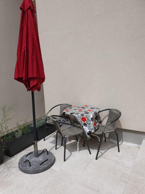 Przed apartamentem znajduje się grill do użytku gości apartamentu.