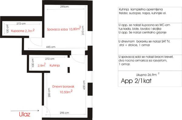W pełni wyposażone i nowoczesne apartamenty w spokojnej ulci trzecim rzędzie od morza. Obiekt położony jest 10 minut spacerem do plaży. Najbliższa plaża jest kamienista, a rząd wzdłuż wybrzeża usiane plażami jeden po drugim: żwir, piasek, beton, i trochę dalej i kamieniste. Plaże są wyposażone w kompozycji do zabawy w morzu, a także parki dla dzieci i boiska do siatkówki plażowej. W okolicach 50 metrów i korty tenisowe. W bezpośrednim sąsiedztwie Villa Lara jest restauracja - pizzeria, a 100 metrów od hotelu i przechowywać. Mieszkanie jest wszystko pod warunkiem, - ręczniki, pościel i kuchnią wyposażoną we wszystkie niezbędne przybory do gotowania i serwowania, a także czajnik do kawy do kawy lub herbaty. Większe apartamenty posiadają taras - część została odkryta i pokryte części, które mogą być stosowane w przypadku niepogody, z widokiem na morze. Dodatkowe łóżka oraz łóżeczka niemowlęce dostępne są przenośne.