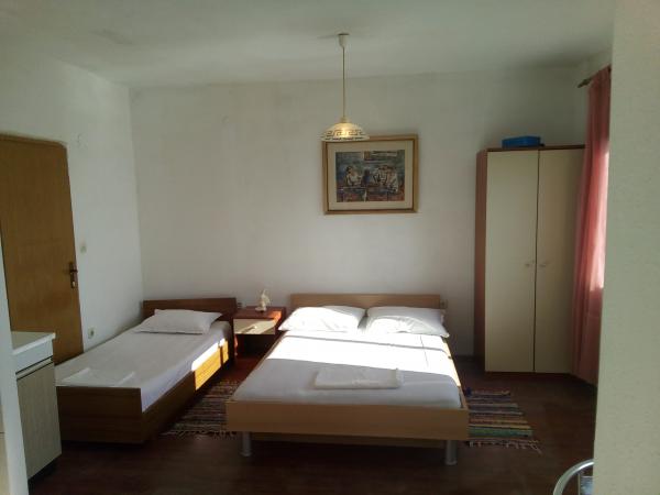 Apartamenty położone są w Gogo Drasnice na plaży. Idealny dla 6 do 8 osób, bo wtedy cały dom do Państwa dyspozycji. Są to 2 apartamenty typu studio, które mają wspólny taras 30 metrów kwadratowych. Choć do końca wsi, wszyscy w okolicy. Najbliższa restauracja znajduje się 20 metrów, a supermarket i poczta 300m lub 2 minuty. Gogo Apartamenty posiadają prywatny parking.