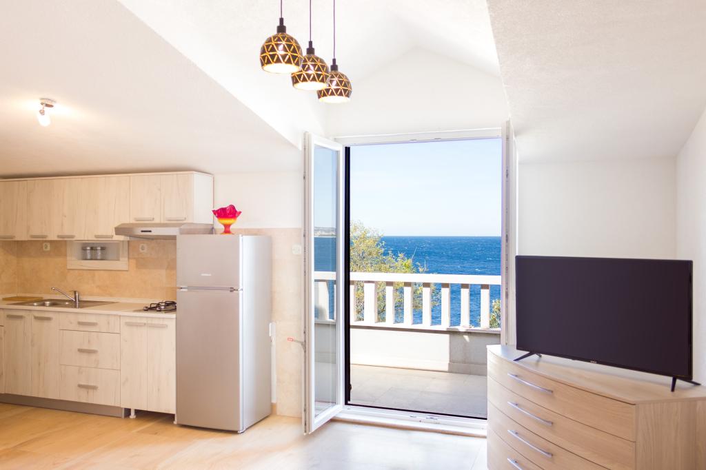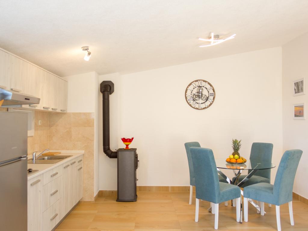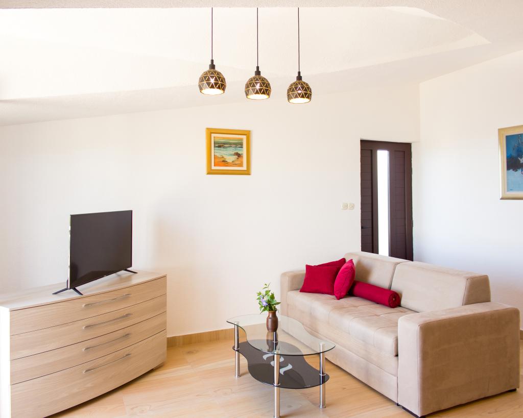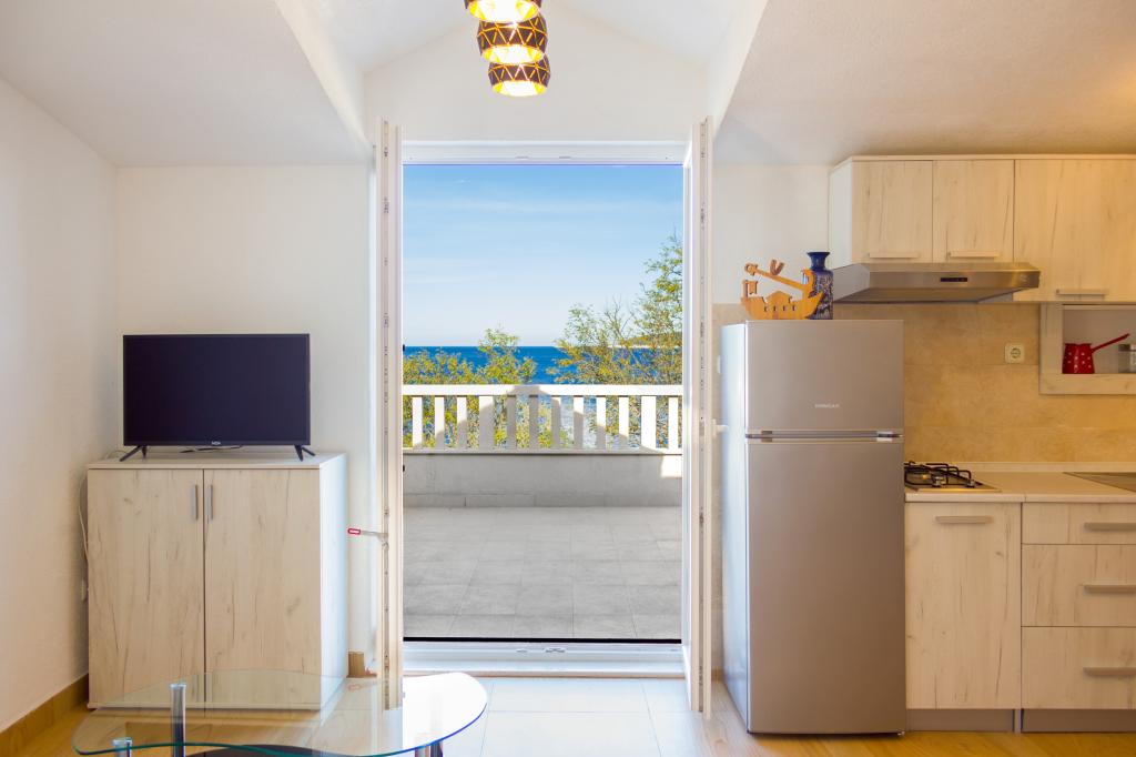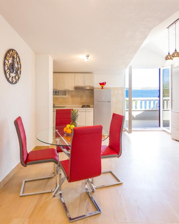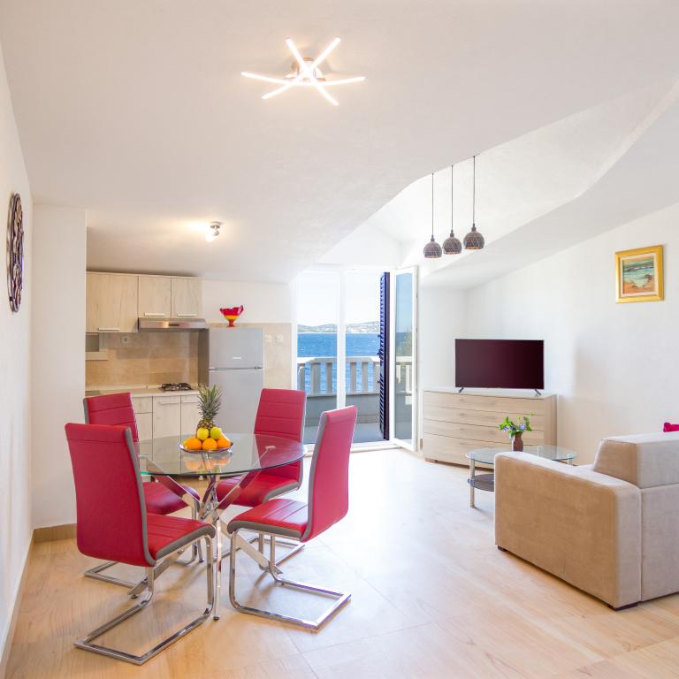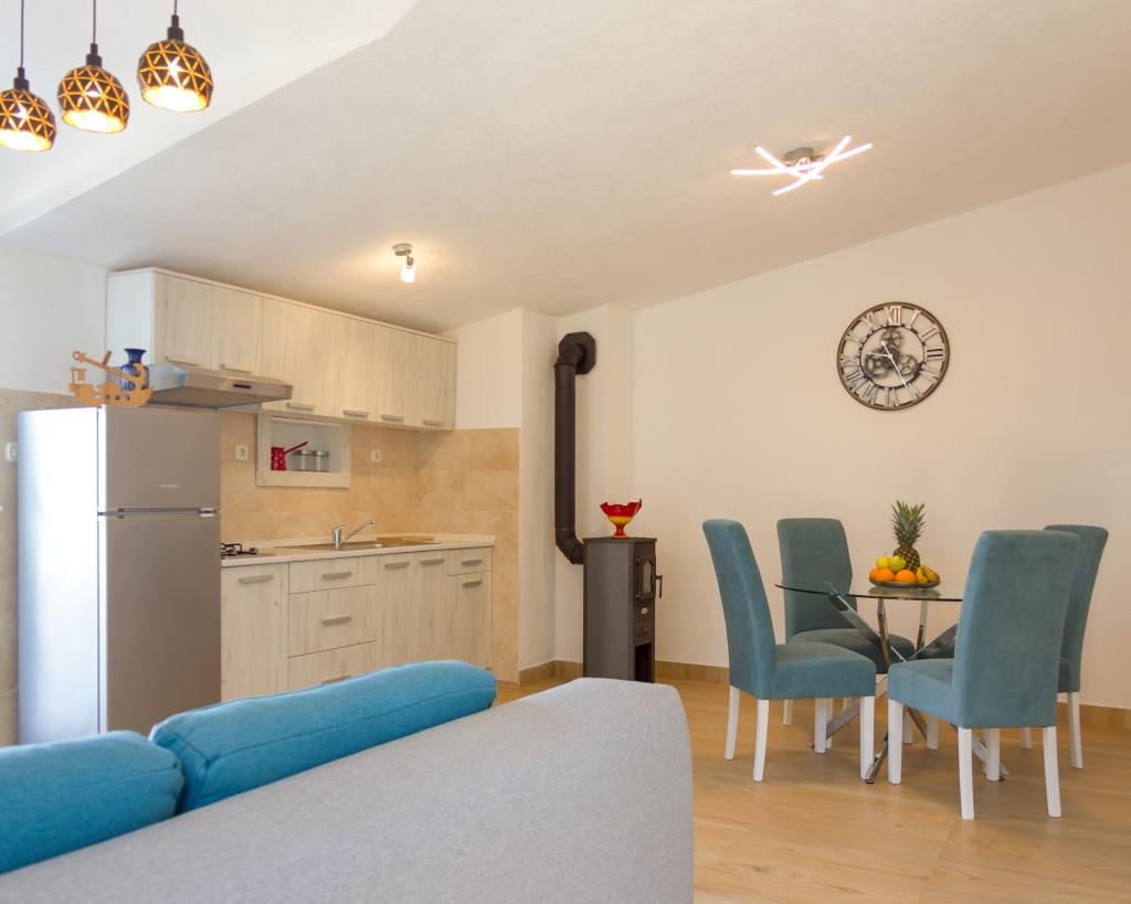 Apartamenty Val i Sol znajdują się na wyspie Drvenik Mali, w zatoce Mala Rina, w pierwszym rzędzie do morza, 70 m od wybrzeża. Apartamenty na wyspie Drvenik Mali składają się z wyposażonej kuchni, jadalni, salonu z telewizorem i rozkładaną sofą, sypialni z wentylatorem chłodzącym, tarasu z pięknym widokiem, łazienki z suszarką do włosów. Oba apartamenty mają widok na morze. Istnieje możliwość wynajęcia całego piętra domu. Apartamenty Val i Sol, Drvenik Mali, oferują bezpłatny parking, grill i bezpłatny internet. Na wyspie Drvenik Mali znajduje się sklep z ograniczoną zawartością, restauracja i kawiarnia na plaży. Dlatego zdecydowanie zalecamy zabranie ze sobą jedzenia, napojów i innych niezbędnych rzeczy.