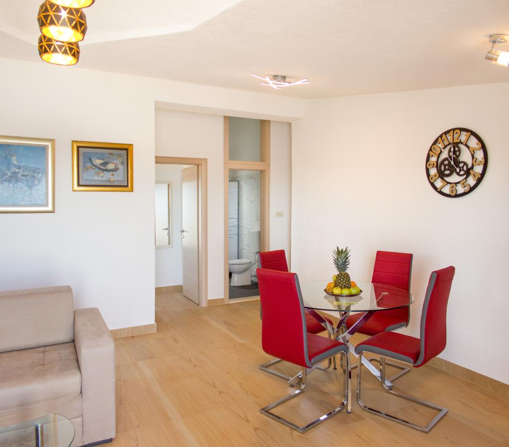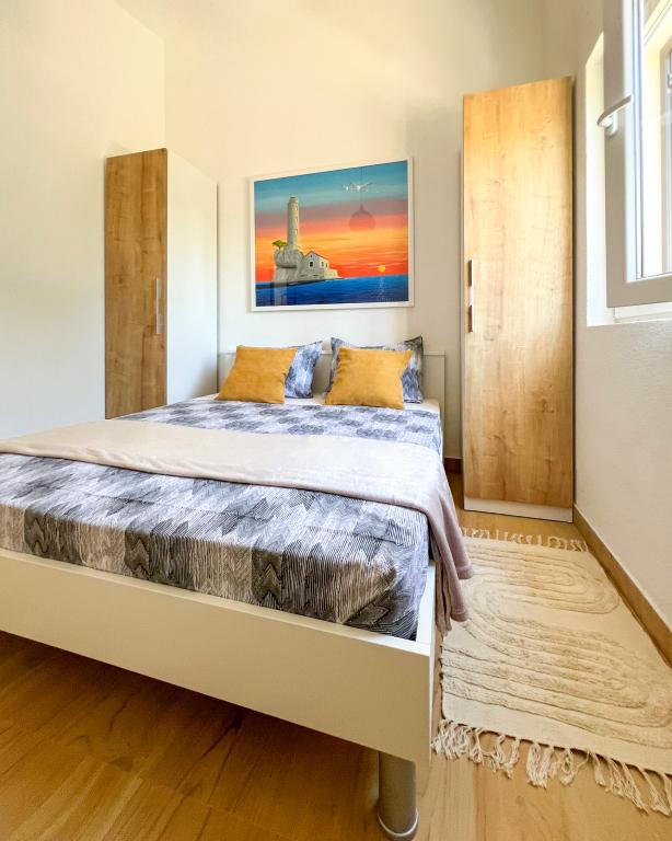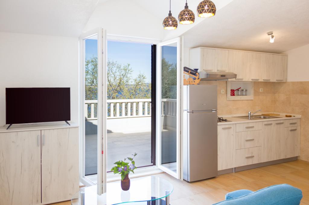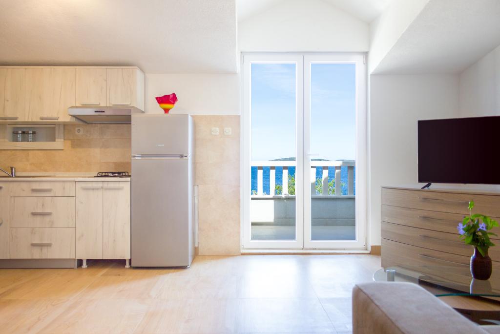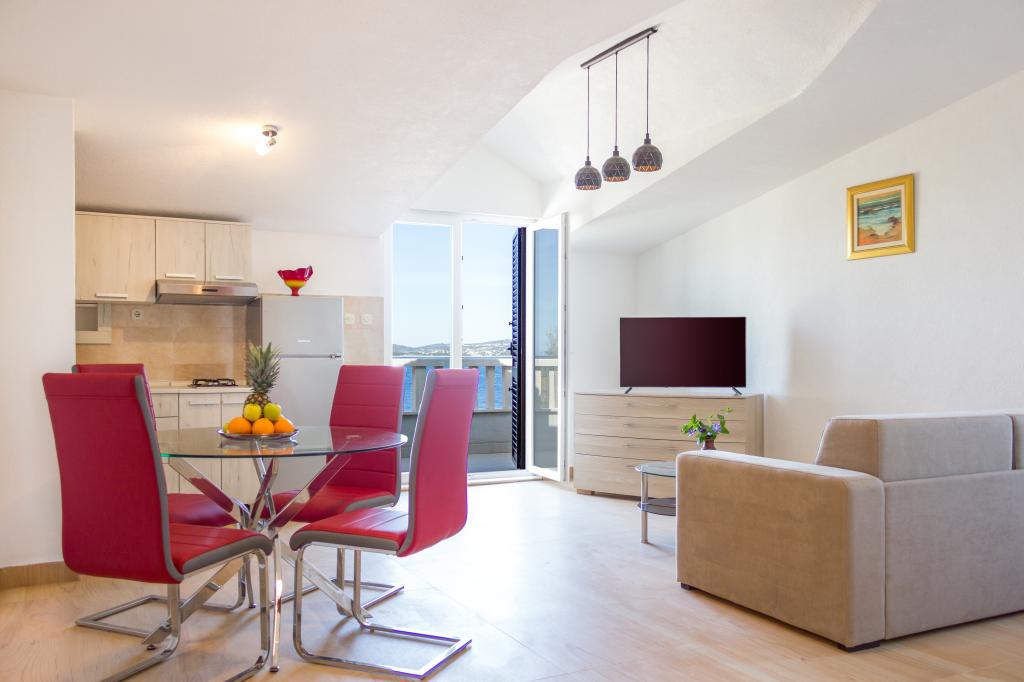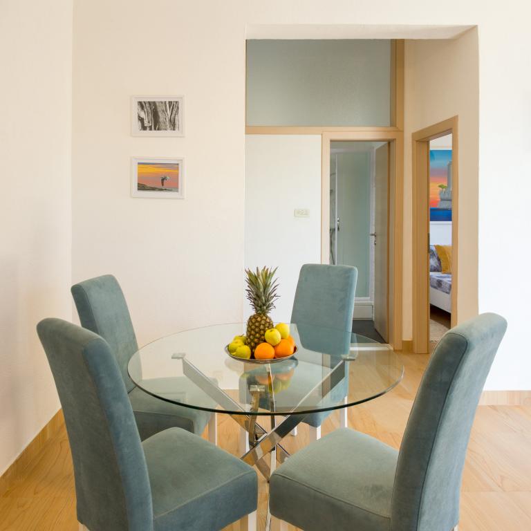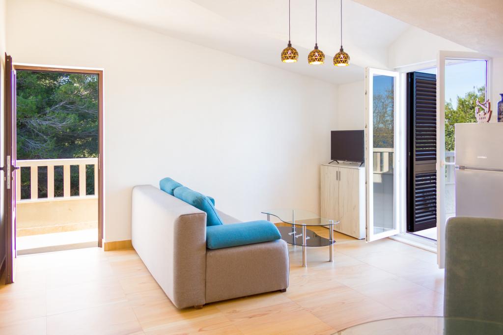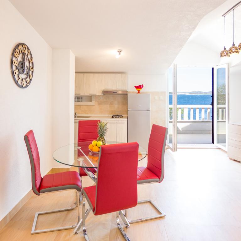 Apartamenty Val i Sol znajdują się na wyspie Drvenik Mali, w zatoce Mala Rina, w pierwszym rzędzie do morza, 70 m od wybrzeża. Apartamenty na wyspie Drvenik Mali składają się z wyposażonej kuchni, jadalni, salonu z telewizorem i rozkładaną sofą, sypialni z wentylatorem chłodzącym, tarasu z pięknym widokiem, łazienki z suszarką do włosów. Oba apartamenty mają widok na morze. Istnieje możliwość wynajęcia całego piętra domu. Apartamenty Val i Sol, Drvenik Mali, oferują bezpłatny parking, grill i bezpłatny internet. Na wyspie Drvenik Mali znajduje się sklep z ograniczoną zawartością, restauracja i kawiarnia na plaży. Dlatego zdecydowanie zalecamy zabranie ze sobą jedzenia, napojów i innych niezbędnych rzeczy.