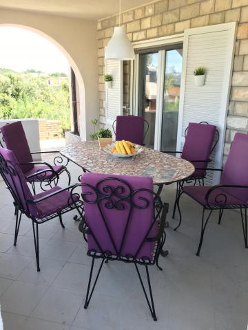 Nasz nowoczesny i komfortowy dom zapewnia prawdziwą rodziną uczucie. Może on pomieścić do 6 osób i znajduje się w spokojnej części wyspy, w odległości zaledwie 250 metrów od morza. Jest kuchnia i grill na świeżym powietrzu dla smakoszy i bliskość dziewiczych plaż. Na parterze znajduje się około 100 m² i składa się z następujących pomieszczeń: pokój dzienny z telewizorem z płaskim ekranem i rozkładaną sofą. Plus jest wyposażona kuchnia z piekarnikiem, kuchenką i jadalnią, a także w sąsiednim łazienka z prysznicem i umywalką. Istnieje również przestronny taras z widokiem na morze, duży stół i krzesła na przyjemny obiad z rodziną, a także posiada ogród. Na pierwszym piętrze znajduje się około 100 m² składa się z trzech pokoi z widokiem na morze, jedna z podwójnym łóżkiem, wszystkie trzy pokoje posiadają telewizor, wentylator i balkon. Jest też łazienka z wanną. Balkony są leżaki i widokiem na morze. Ponadto, znajduje się rozkładana podróży dla małych dzieci w domu na święta.