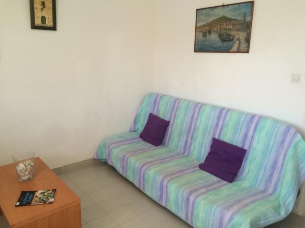 Apartament Drvenik znajduje się na wyspie na wybrzeżu. Apartament znajduje się w dziewiczej przyrody, a można podziwiać błękitne morze pokojowy i kryształu. Wyspa jest połączona promem z Trogir 3 razy dziennie, promem do Trogiru trwa godzinę. Więc można łatwo iść na wycieczkę i doświadczenie zgiełku miasta, a wieczorem znów korzystać ze wszystkich uroków wyspy. Na wyspie znajduje się jedna restauracja (tawerna), poczta i supermarket. Mieszkanie posiada duży taras z widokiem na morze, gdzie można mi wierzyć spędzają najwięcej czasu, z wyjątkiem oczywiście w morzu ... taras pokryty jest markizą i wyposażona w leżaki, dzięki czemu można cieszyć się przez cały dzień. Przestronne mieszkanie 70 m2, na 6 (2) osoba posiada w pełni wyposażoną kuchnię, dwie sypialnie i dwa dodatkowe łóżka w sypialni, pokoju dziennego z rozkładaną sofą (dwa łóżka) oraz w pełni wyposażoną łazienkę. Minimalny pobyt 7 dni !!!!! (Od soboty do soboty, możliwe wyjątki)