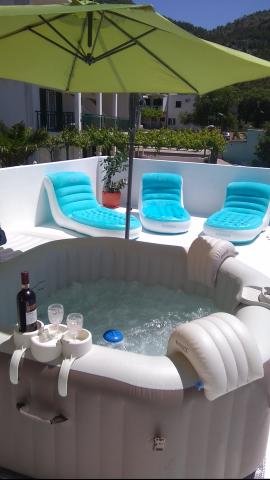 Apartamenty znajdują się w spokojnej części Drvenik, 3 minuty spacerem do plaży. Apartament na wschód może pomieścić 5 osób, ma 45 m2, balkon i taras o powierzchni 70 m2 z basenem do masażu i leżakami. Mieszkanie zachodnie może pomieścić 2 osoby plus 2, ma 40 m2 i balkon 10 m2. Nasze apartamenty oferują pełną prywatność. Jednostki zakwaterowania znajdują się na pierwszym piętrze domu, każdy apartament ma własną osobną klatkę schodową. Przed budynkiem znajduje się plac zabaw dla dzieci oraz boisko piłkarskie idealne dla rodzin z dziećmi. Parking jest zabezpieczony. Apartament typu studio można połączyć z apartamentem zachodnim. Apartamenty 5 plus 1, 3 plus 1 i 2 plus 1 znajdują się w Makarskiej, pięć minut spacerem od centrum miasta i piętnaście minut od miejskiej plaży.