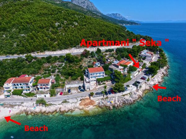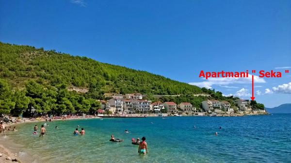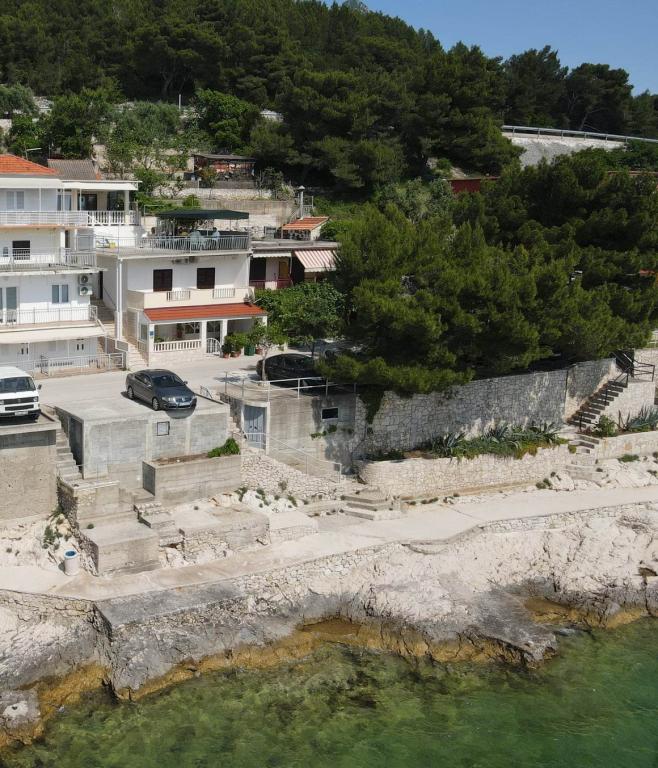 Apartamenty znajdują się w cichej okolicy Drvenika. Znajduje się w pierwszym rzędzie do morza. Parking znajduje się przed budynkiem. Pod budynkiem znajduje się betonowo-kamienisty brzeg, a plaża żwirowa oddalona jest o 50m. Na 100 m znajdują się restauracje, kawiarnie, piekarnie, sklepy, kantor.