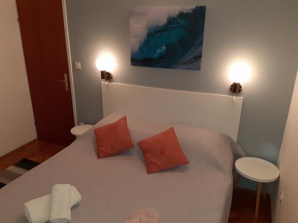 Apartamenty znajdują się zaledwie 10 metrów od morza ze wspaniałym widokiem na morze, plażę i całe miasteczko. Wszystkie apartamenty wyposażone są w TV.Apartamenty składają się z dwóch sypialni, dwóch łazienek oraz dużej przestrzeni z kuchnią, jadalnią i pokojem dziennym.