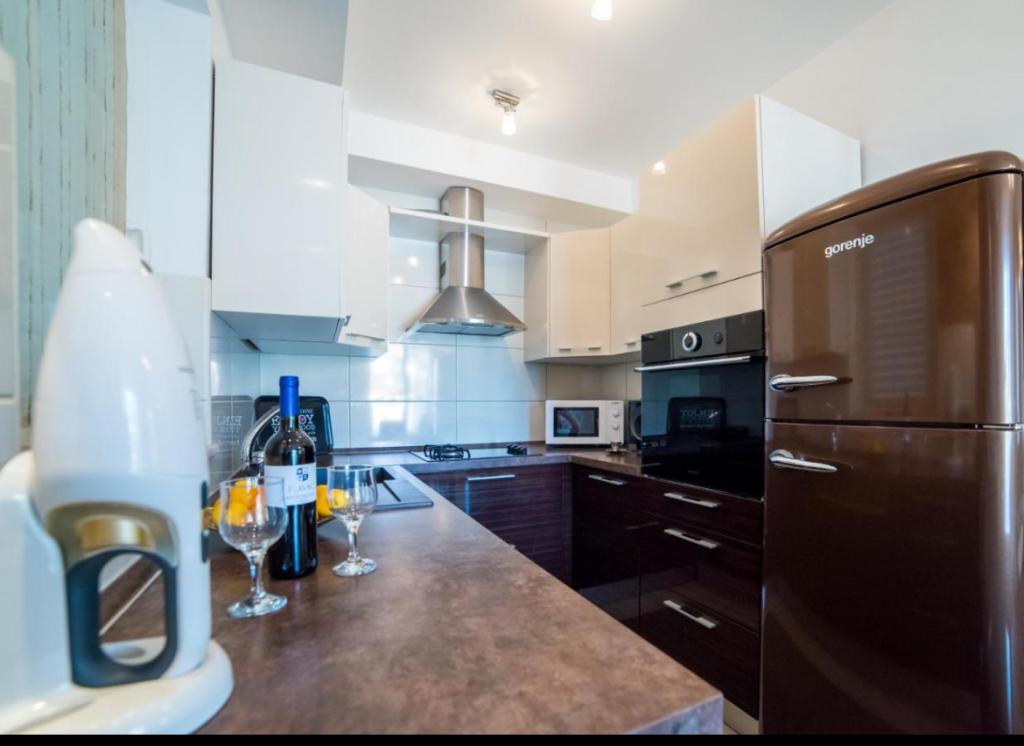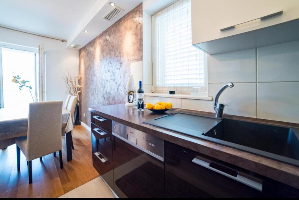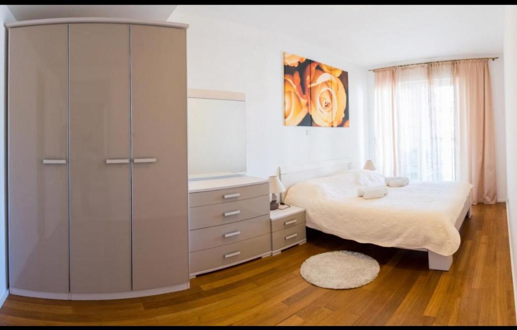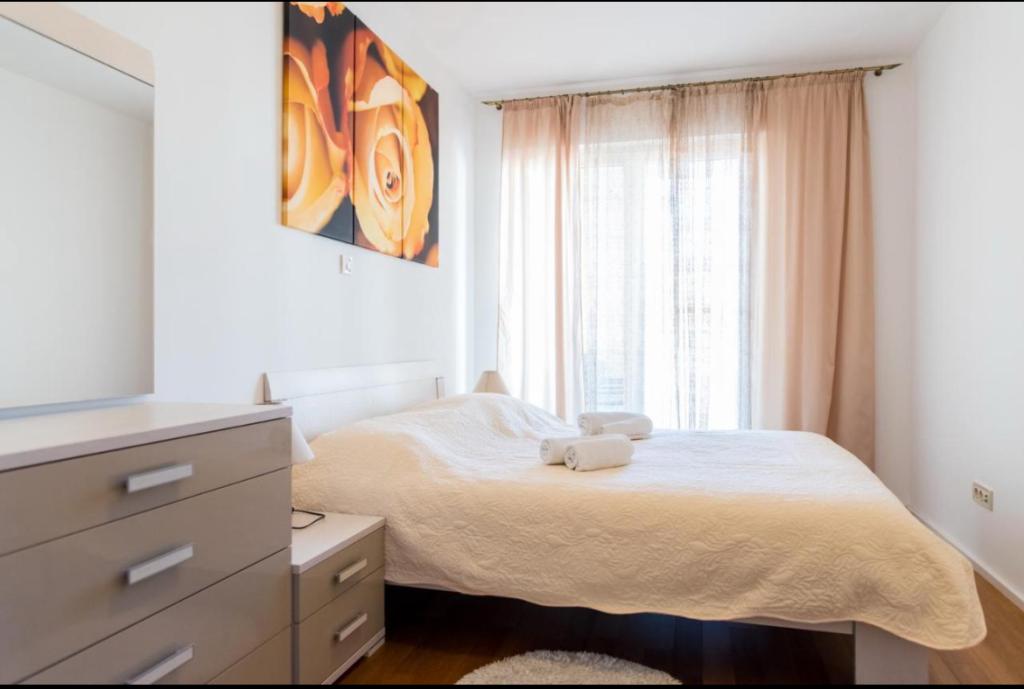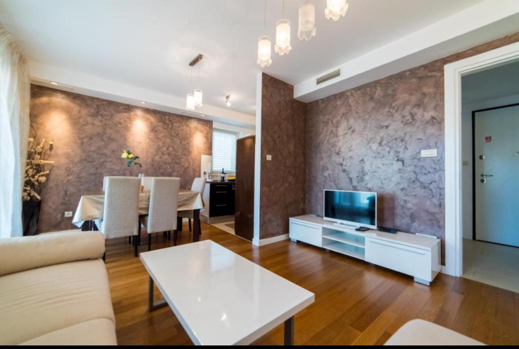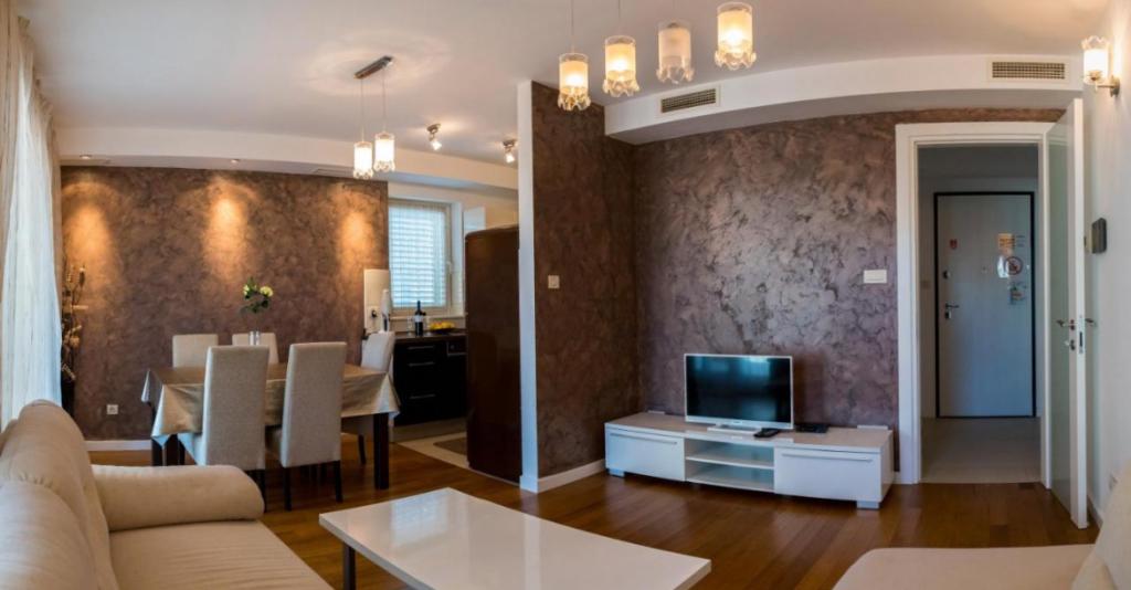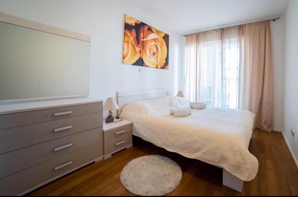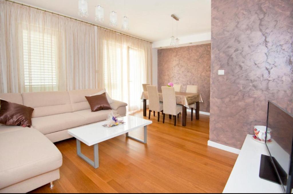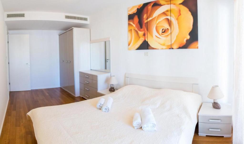 Przestronny dwupokojowy apartament położony w bezpośrednim sąsiedztwie pięknej plaży oferuje idealne wakacje dla rodzin lub par. Mieszkanie jest nowocześnie urządzone i w pełni wyposażone. Składa się z 2 sypialni, salonu, w pełni wyposażonej kuchni i łazienki oraz dużego tarasu. Mieszkanie znajduje się na 4 piętrze budynku mieszkalnego z windą.