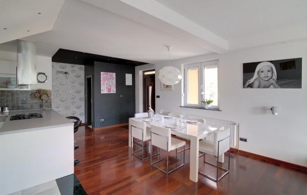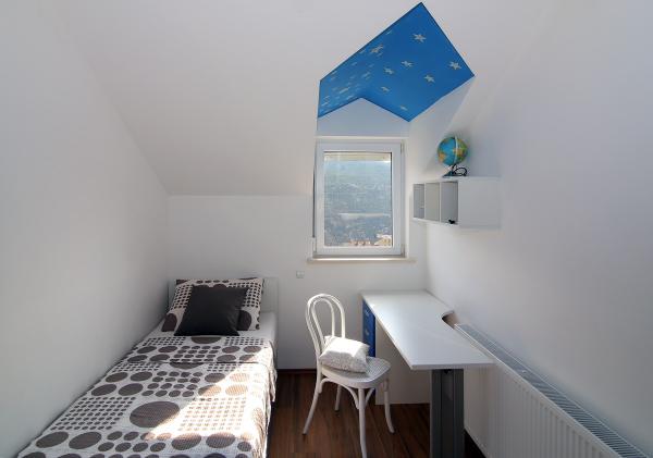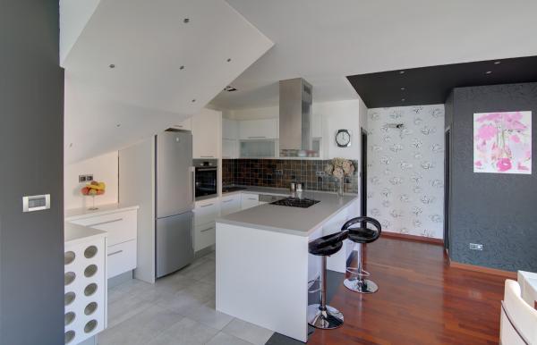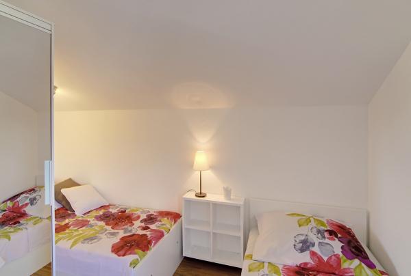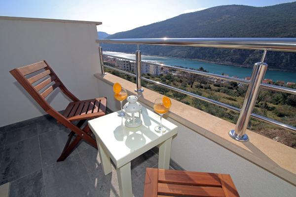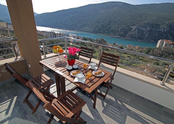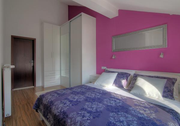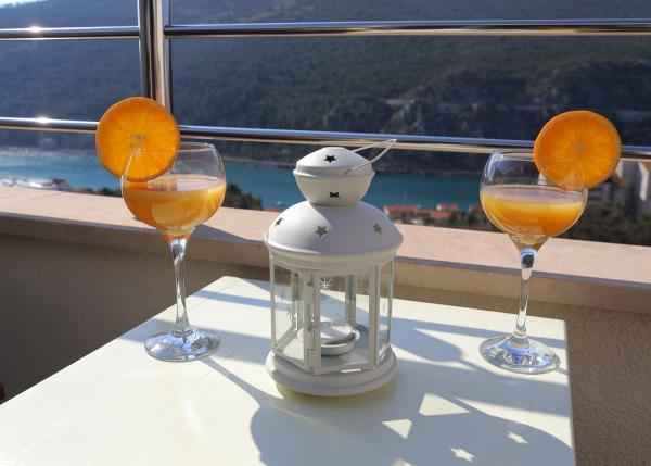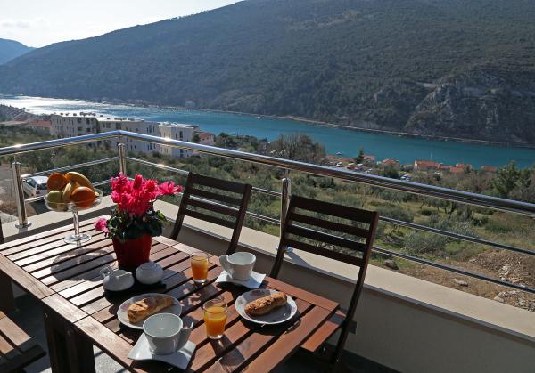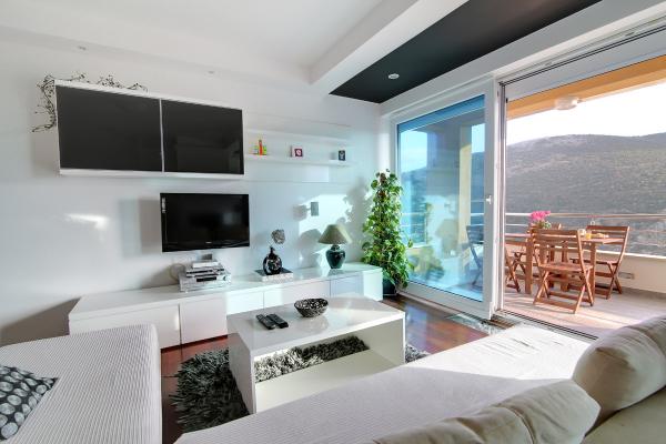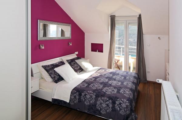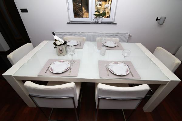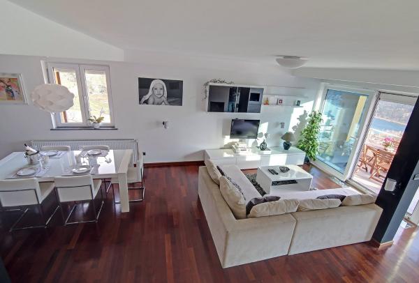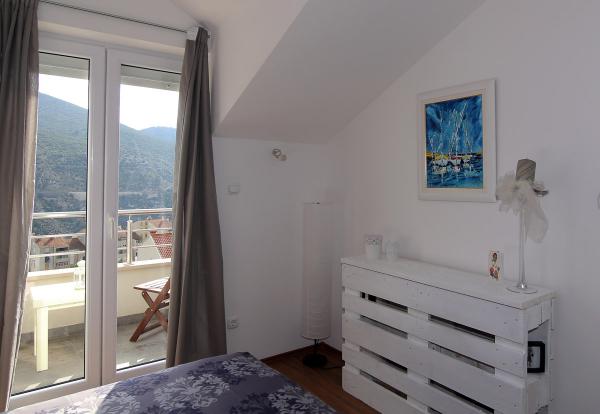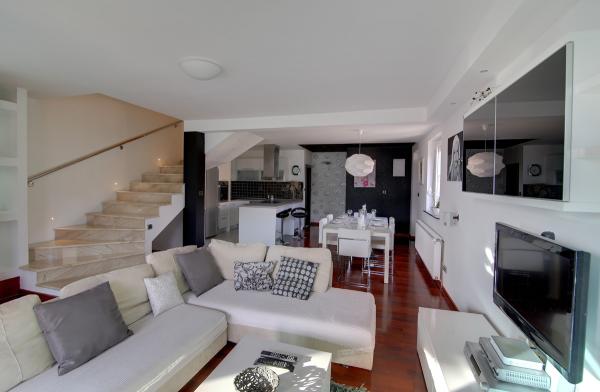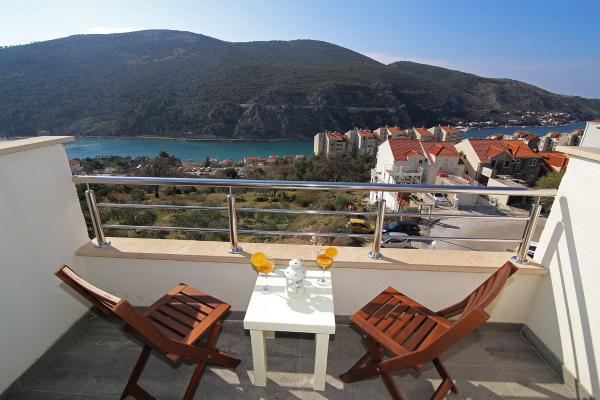 Nowocześnie urządzony luksusowy apartament dwukondygnacyjny w domu, 130 m2 znajduje się w Nova Mokošica, zaledwie 12 km od starego Dubrownika. Położony w cichej miejscowości w pobliżu gajów oliwnych, drzew i zieleni, a taras i balkon oferuje piękny widok na rzekę Ombla, ACI Marina i wzgórza Srd. Na piętrze znajdują się dwa pokoje dwuosobowe (pokój typu twin), łazienka z prysznicem i jedna sypialnia z łazienką (en suite), pokój jest wyposażony w jacuzzi dla dwóch osób i suszarką do włosów i balkonem. Na niższym piętrze znajduje się w oddzielnym WC i nowoczesną w pełni wyposażona kuchnia (kuchenka, piekarnik, zmywarka, pralka, lodówka, mikrofalówka, naczynia, czajnik elektryczny, toster), jadalnia z przestronnego salonu z telewizorem LCD, ciężarówki wewnętrznego i taras , Apartament jest klimatyzowany, z bezpłatny bezprzewodowy internet (Wi-Fi), parking i grill na świeżym powietrzu. Najbliższa plaża znajduje się 5 km od hotelu, sklep spożywczy 150 m, w promieniu 300 metrów znajdują się bary, fast food, bistro.