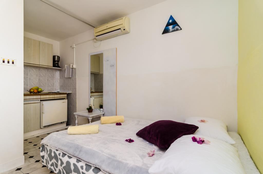 Nasza kawalerka znajduje się w wyjątkowo spokojnej okolicy, bez hałasu samochodów i miejskiego zgiełku. Oddzielne, otoczone dużym ogrodem, z lokalnymi owocami i warzywami. Drugi rząd od morza, gdzie można wybrać ciche i skaliste plaże lub plaże dwóch 5-gwiazdkowych hoteli, które znajdują się 5 minut od naszego apartamentu typu studio, Hotelu Libertas Rixos i Hotelu Bellevue. Zadaszony taras otoczony kwiatami, z widokiem na morze i wyspę Lokrum to z pewnością najpiękniejsza część, jaka może Cię spotkać. Jeśli chcesz "uciec" od hałasu i tłumów, nasze studio jest idealne na ciszę, spokój i te chwile samotności, na które chcesz sobie pozwolić na wakacjach. Parking jest bezpłatny, nie ma schodów i jest dostępny również dla osób starszych. To jest 20 minut spacerem do centrum Stari Grad, mały sklep jest 50 metrów, piekarnia, restauracje, fast food są 5 minut. Przystanek autobusowy oddalony jest o 2 minuty. Zakaz zgromadzeń i głośnej muzyki. Sofa jest rozkładana, więc studio jest idealne dla pary. Powitanie!!