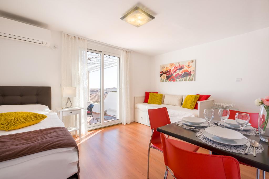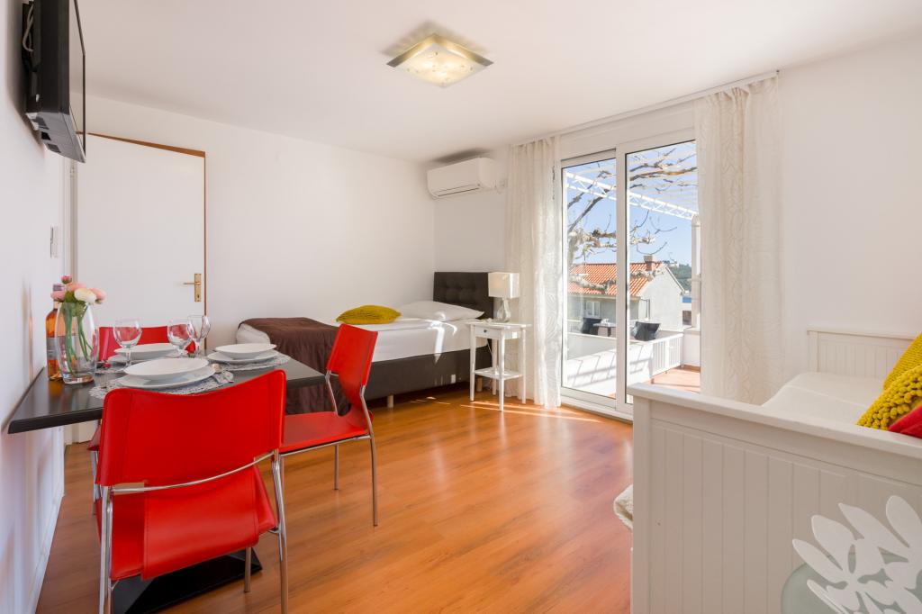 Apartament Banje Beach 3 (Buića 10) Ten klimatyzowany apartament oferuje 3 sypialnie, półtorej łazienki, w pełni wyposażoną kuchnię (zmywarka, piekarnik, kuchenka mikrofalowa, kuchenka indukcyjna, pralka,...) i jadalnię z dostęp do dużego tarasu z meblami wypoczynkowymi. Mieszkanie znajduje się w spokojnej okolicy, zaledwie 5-10 minut spacerem od Starego Miasta i najsłynniejszej plaży Banje. Do wszystkich atrakcji turystycznych można dotrzeć pieszo w zaledwie 10 minut. Apartament Banje Beach 1 Ten klimatyzowany apartament oferuje 2 sypialnie, kuchnię ze wszystkimi urządzeniami, łazienkę z wanną z hydromasażem oraz balkon z widokiem. Mieszkanie zlokalizowane jest w spokojnej okolicy, zaledwie 5-10 minut spacerem od Starego Miasta i najsłynniejszej plaży Banja. Do wszystkich atrakcji turystycznych można dotrzeć pieszo w zaledwie 10 minut. Apartament Glorijet (Buića 10) Ten apartament typu studio oferuje jedno łóżko i kanapę dla dodatkowej osoby, łazienkę, kuchnię ze zmywarką, dostęp do balkonu z widokiem i tarasu. Mieszkanie znajduje się zaledwie 5-10 minut spacerem od Starego Miasta i jego najsłynniejszych