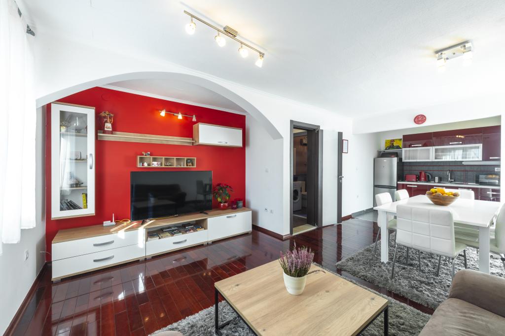 Luksusowy apartament w pełni i nowocześnie urządzony w spokojnej części miasta. Centrum miasta (stare miasto) znajduje się 10 minut spacerem od apartamentu. Mieszkanie znajduje się 10 minut spacerem od plaży. Taras na relaks i przyjemne chwile o zachodzie słońca. Mieszkanie ma 2 duże sypialnie, duży salon, łazienkę, kuchnię i duży taras do relaksu. Jeśli chcesz spędzić wakacje w pobliżu centrum, a jednocześnie w cichszym otoczeniu, z dala od zgiełku miasta, apartamenty Leto są idealne dla Ciebie. Czekamy na Ciebie :)