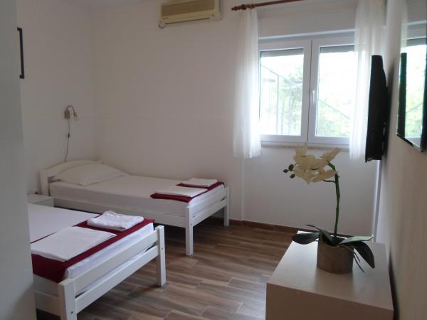 Bardzo czyste i ładnie urządzone pokoje z łazienką, klimatyzacją, TV i balkon z widokiem na morze. Piękne położenie z bezpiecznego bezpłatny parking przed domem. Gorąco polecam!