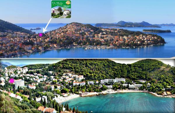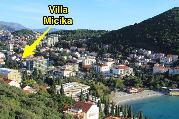 Villa Micika to najlepsze rozwiązanie na przyjemne wakacje w Dubrowniku. Otwarty przez cały rok, w czasie świąt Bożego Narodzenia, świąt wielkanocnych i świąt, willa jest odpowiednia zarówno dla ludzi biznesu, jak i turystów. Willa znajduje się w spokojnym centrum Dubrownika zwanym Lapad, w otoczeniu palm i innej śródziemnomorskiej roślinności. Jest tylko 300 m od głównej plaży i 10 m od kortów tenisowych. Ma 8 pokoi podzielonych na 3 gwiazdki. Pokoje mają pojemność 12-15m2 i mają 8 podwójnych łóżek i pozwalają na całkowite zakwaterowanie dla 16 osób. Obiekt jest oddzielny i znajduje się na dwóch piętrach. Wszystkie pokoje mają widok na piękne tereny zielone i są wyposażone w łazienkę, prysznic, WC, TV-SAT, AIR-CON i wszystkie pokoje posiadają centralne ogrzewanie. Na terenie obiektu znajduje się wspólny taras i własny parking terenowy