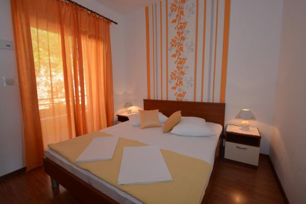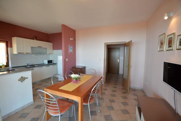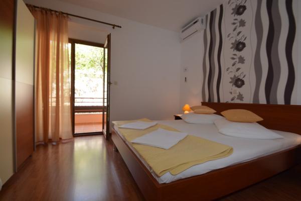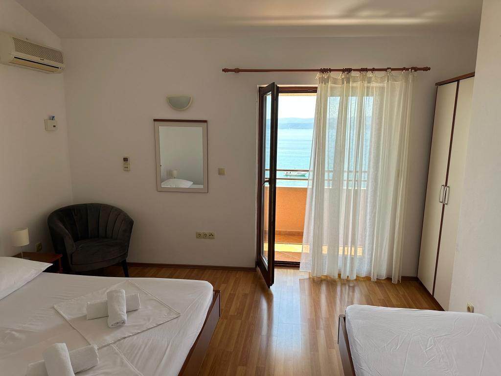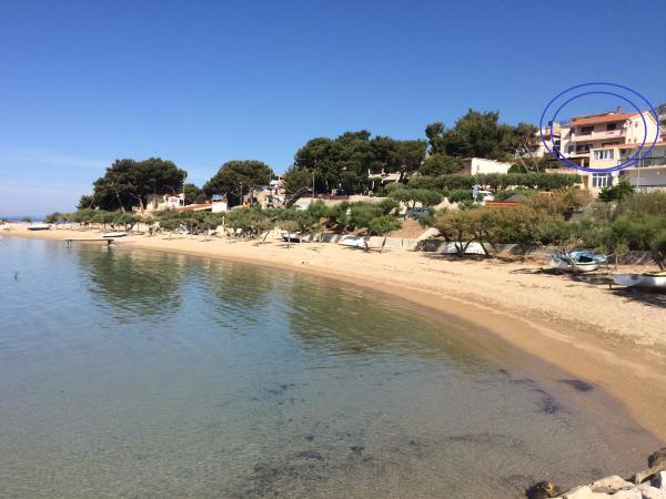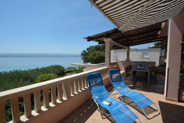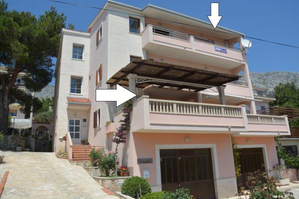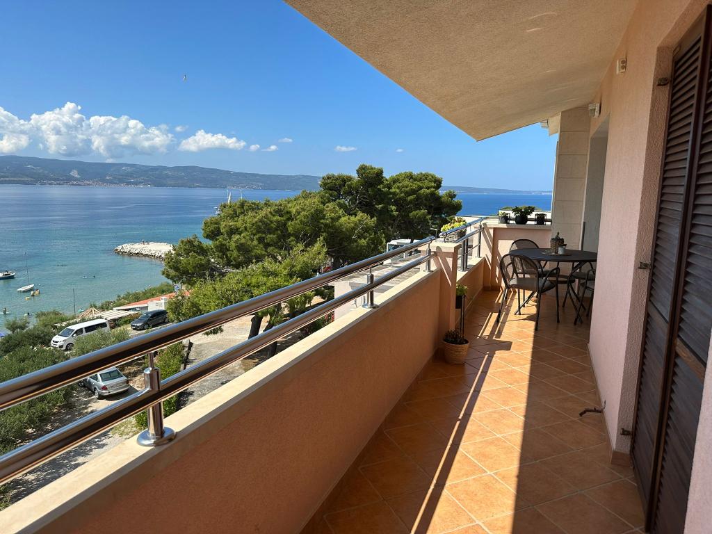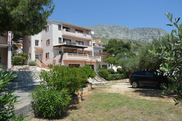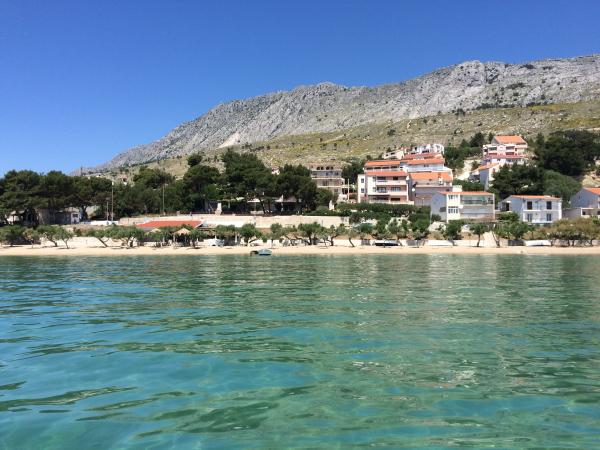 Oferujemy dwa przestronne i dobrze wyposażone apartamenty z widokiem na morze, 50 m od piaszczystej plaży. Apartamenty przeznaczone są dla 8 osób - są idealne dla grupy przyjaciół lub rodziny z dziećmi. Kwatera oferuje bezpłatny parking, WI-fi, podwórko, miejsce na grilla. Apartament A1 składa się z czterech dwuosobowych sypialni, każda z własną łazienką, dużym tarasem i kuchnią. W kuchni mikrofalówka, zmywarka, lodówka, kuchenka. Apartament A2 składa się z trzech pokoi; jeden pokój składa się z dwóch podwójnych łóżek dla czterech osób, drugi to pokój dwuosobowy, a trzeci składa się z łoża małżeńskiego i pojedynczego. Każdy pokój posiada łazienkę. Mieszkanie posiada dużą kuchnię i taras z widokiem na morze. Każdy apartament wyposażony jest w jeden telewizor w części wypoczynkowej. Zakwaterowanie znajduje się 2 km od miasta Omis i tylko 50 m od najbliższej restauracji. Dworzec autobusowy znajduje się tuż obok domu, co zapewnia dobre połączenia komunikacyjne z oddalonym o 20 km Splitem.