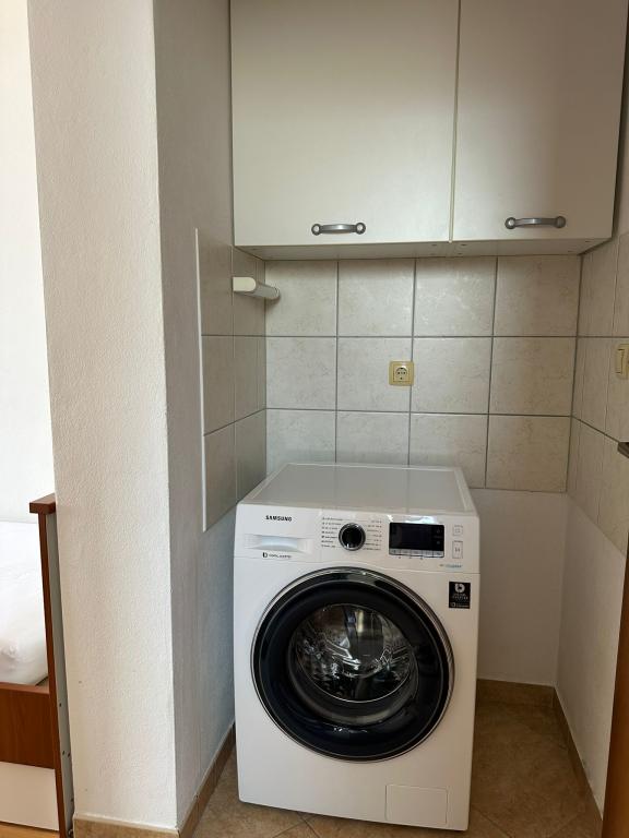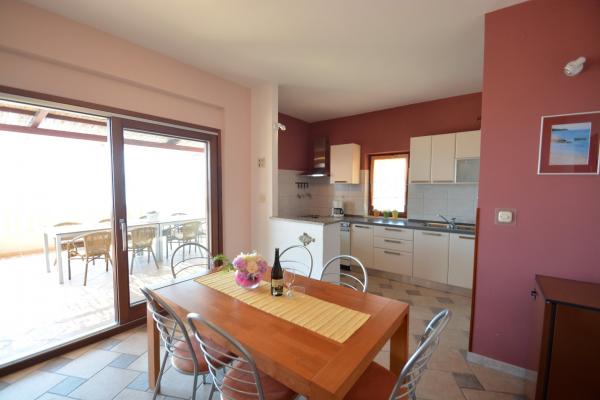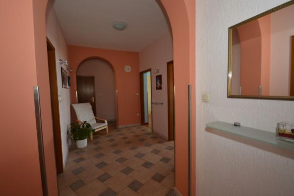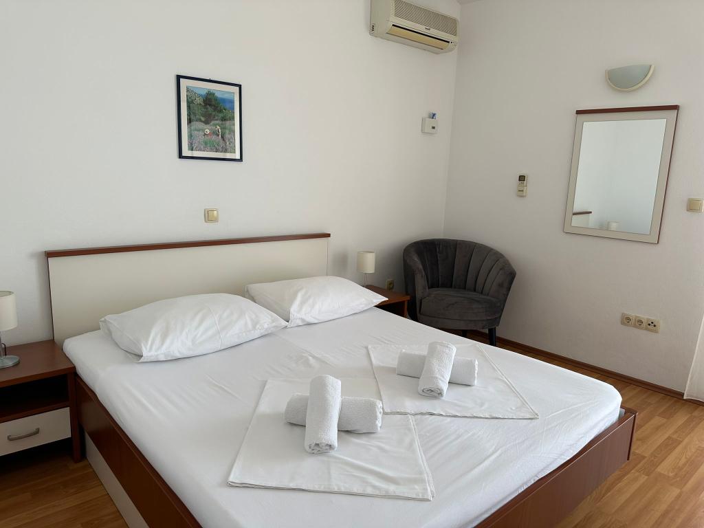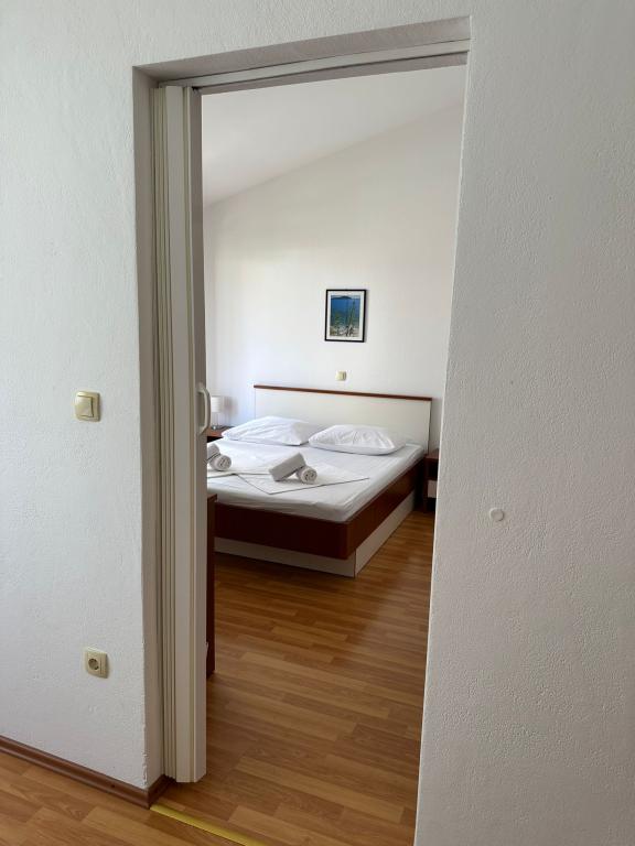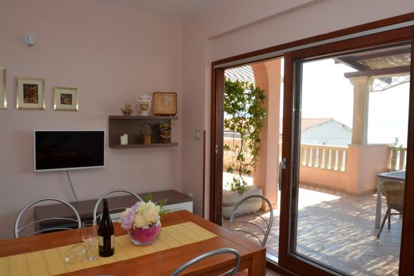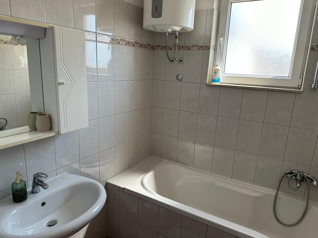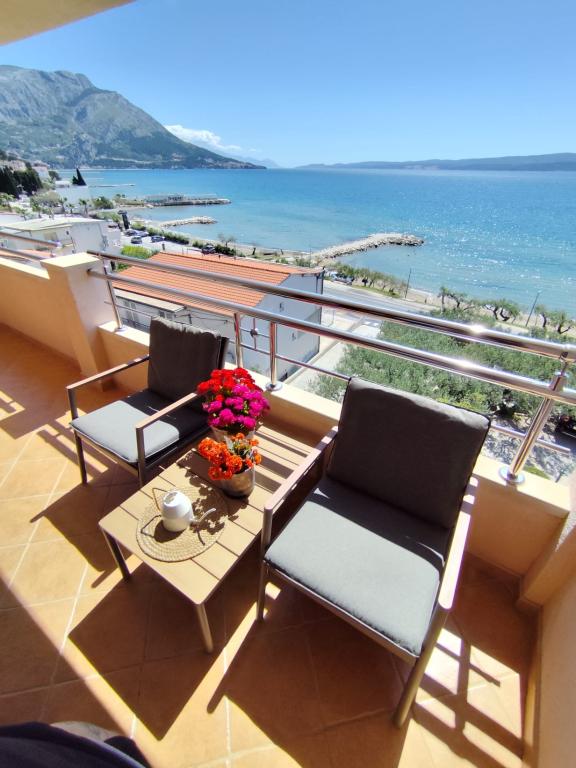 Oferujemy dwa przestronne i dobrze wyposażone apartamenty z widokiem na morze, 50 m od piaszczystej plaży. Apartamenty przeznaczone są dla 8 osób - są idealne dla grupy przyjaciół lub rodziny z dziećmi. Kwatera oferuje bezpłatny parking, WI-fi, podwórko, miejsce na grilla. Apartament A1 składa się z czterech dwuosobowych sypialni, każda z własną łazienką, dużym tarasem i kuchnią. W kuchni mikrofalówka, zmywarka, lodówka, kuchenka. Apartament A2 składa się z trzech pokoi; jeden pokój składa się z dwóch podwójnych łóżek dla czterech osób, drugi to pokój dwuosobowy, a trzeci składa się z łoża małżeńskiego i pojedynczego. Każdy pokój posiada łazienkę. Mieszkanie posiada dużą kuchnię i taras z widokiem na morze. Każdy apartament wyposażony jest w jeden telewizor w części wypoczynkowej. Zakwaterowanie znajduje się 2 km od miasta Omis i tylko 50 m od najbliższej restauracji. Dworzec autobusowy znajduje się tuż obok domu, co zapewnia dobre połączenia komunikacyjne z oddalonym o 20 km Splitem.
