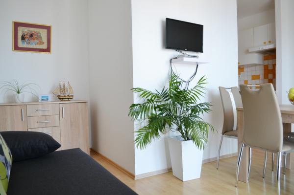 Nowo wybudowany, nowoczesny i funkcjonalny urządzone apartamenty w Duce, 20 metrów od pięknej, piaszczystej plaży z dużą ilością udogodnień dla wszystkich grup wiekowych. Apartamenty znajdują się 10 minut spacerem od centrum Omis, starożytnego miasta Dalmacji, że będzie wygrać wszystkie gości na pierwszy rzut oka. Czy chcesz spędzić spokojne rodzinne wakacje lub aktywny wypoczynek w odpowiednim miejscu. Duce Omis i wszyscy mają za dużo do zaoferowania. Apartamenty znajdują się w pobliżu wszystkich udogodnień, plaże, restauracje, sklepy, muzea, place zabaw, korty tenisowe, piłki nożnej i innych sportów. Wszyscy goście mają parking strzeżony z monitoringiem.