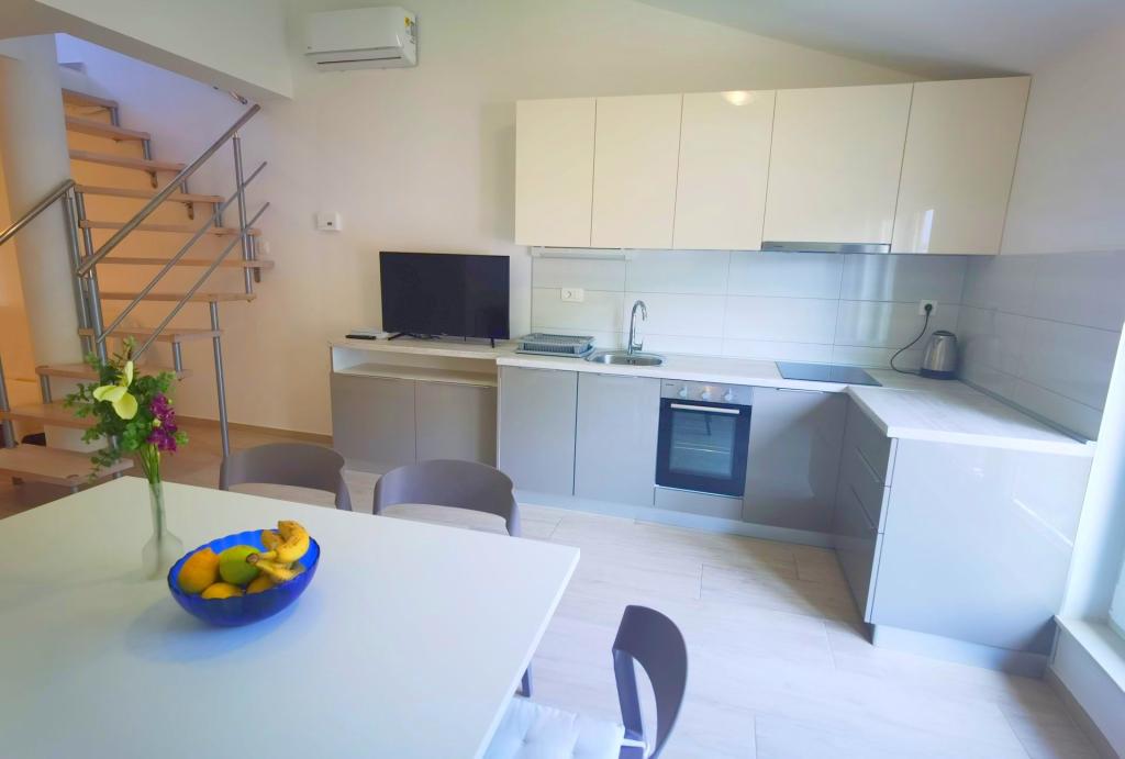 Pozytywnie: Świetna lokalizacja, tuż przy plaży. Plaże przed domem są świetne (żwir, piasek). Negatywny: Po przyjeździe, zaraz na parkingu, zamiast powitalnego drinka, pani poprosiła nas o zapłatę za mieszkanie, a mieszkania jeszcze nawet nie widzieliśmy. Kiedy poprosiliśmy o pilota do telewizora, pani powiedziała, że telewizor nie działa. Przez cały nasz pobyt w apartamencie telewizor nie był naprawiany ani przywieziony na nowy.