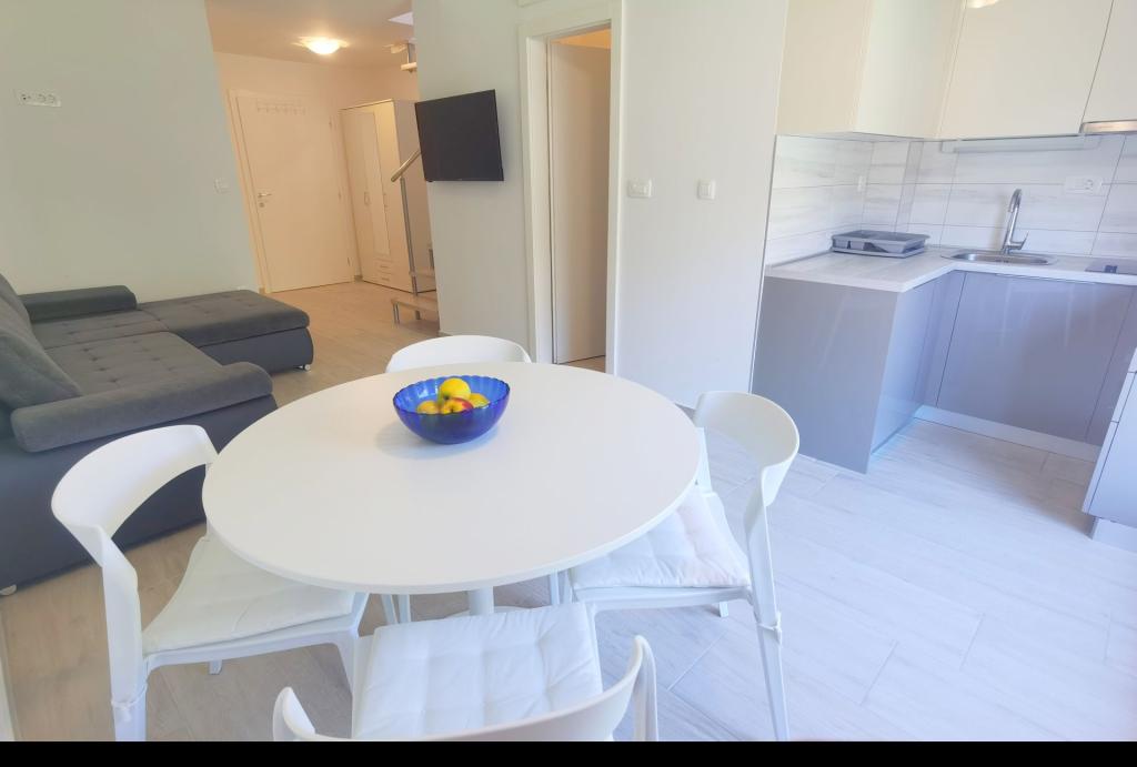 Mieszkanie jest bardzo nowocześnie urządzone. Piękne widoki z każdego okna i tarasu. Lodówka przywitała nas tłusta i pełna sierści, skrzynia również pełna sierści i trawy. Poduszki w salonie nasmarowane. Całe mieszkanie było pełne włosów innych ludzi. Niektóre naczynia były umazane, a samo mieszkanie nie jest wystarczająco wyposażone w niezbędne naczynia. Klimatyzacja jest płatna osobno, telewizor nie działa, zmywarka nie ma tabletek do prania. Parking był niewystarczający w stosunku do liczby samochodów, często musieliśmy schodzić z trzeciego piętra w celu przestawienia samochodów i ustalenia nowego harmonogramu parkowania. W pobliżu nie ma piekarni, a do najbliższego sklepu jest tylko 650 m, choć w ogłoszeniu jest 200 m. Bardzo fajne miejsce na wypoczynek z rodziną.