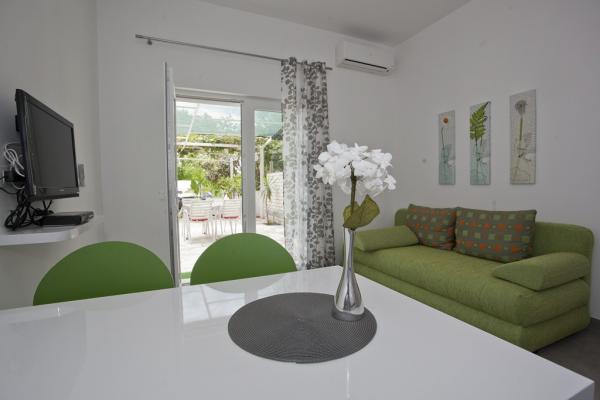 Gorąco polecam. Apartament wyposażony w nowoczesne meble. Faktem jest, że, jak zdjęcia. Kuchnia wyposażona we wszystkie potrzebne w kuchni, na tygodniowy pobyt nie mogę znaleźć coś podoba w kuchniach wyposażonych przeoczyć. Kanapa w układzie kuchnia dla dwóch łóżek pełni wartościowe. Plaża jest po drugiej stronie drogi, około 80 m jest metro pod głównej drodze do plaży. Tuż obok sklepu i restauracji. Piaszczysta plaża, woda jest czysta, drzewa, plaża. Maksymalna satysfakcja.