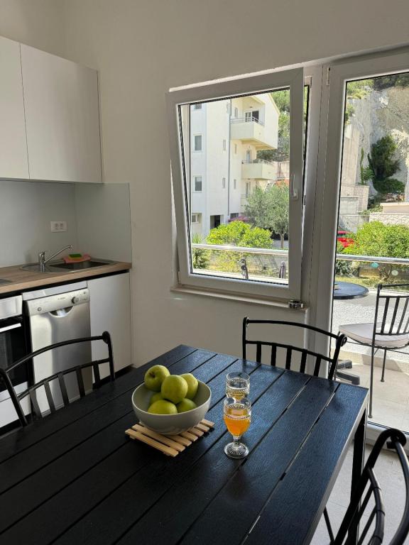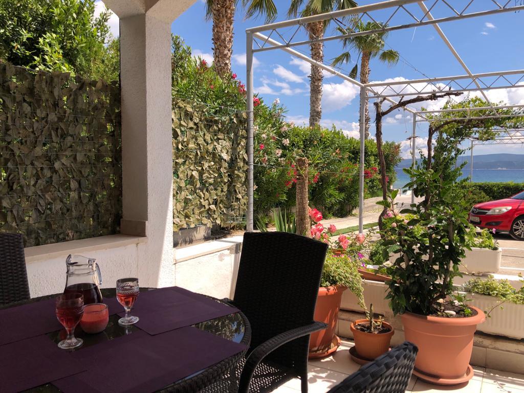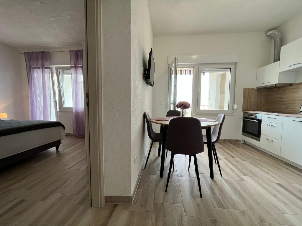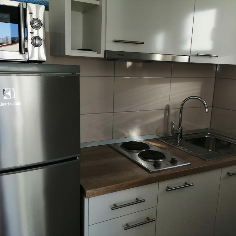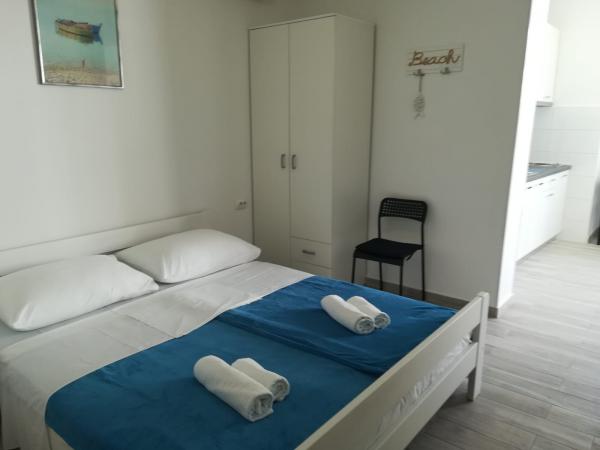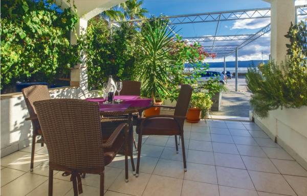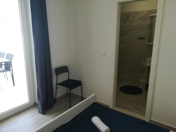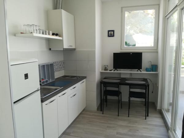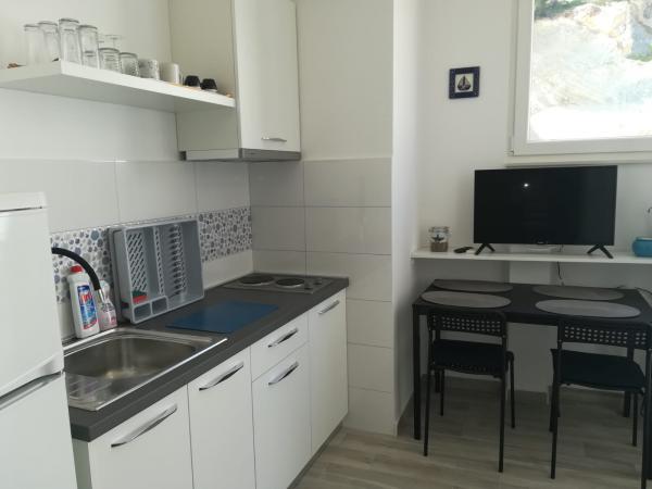 Bardzo mili i sympatyczni gospodarze, odnowione studio - z kuchnią, łazienką oraz z przepięknym kwiecistym tarasem umilającym wieczory i poranne śniadania. Wyposażenie apartamentu nowe i sprawne. Z tarasu bezpośrednie wyjście na plaże ok 20 m . W okolicy sklep i kilka restauracji. Parking pod domem. Spokojna okolica, do centrum Omis 30 min na piechotę. Jesteśmy bardzo zadowoleni z pobytu w tym miejscu