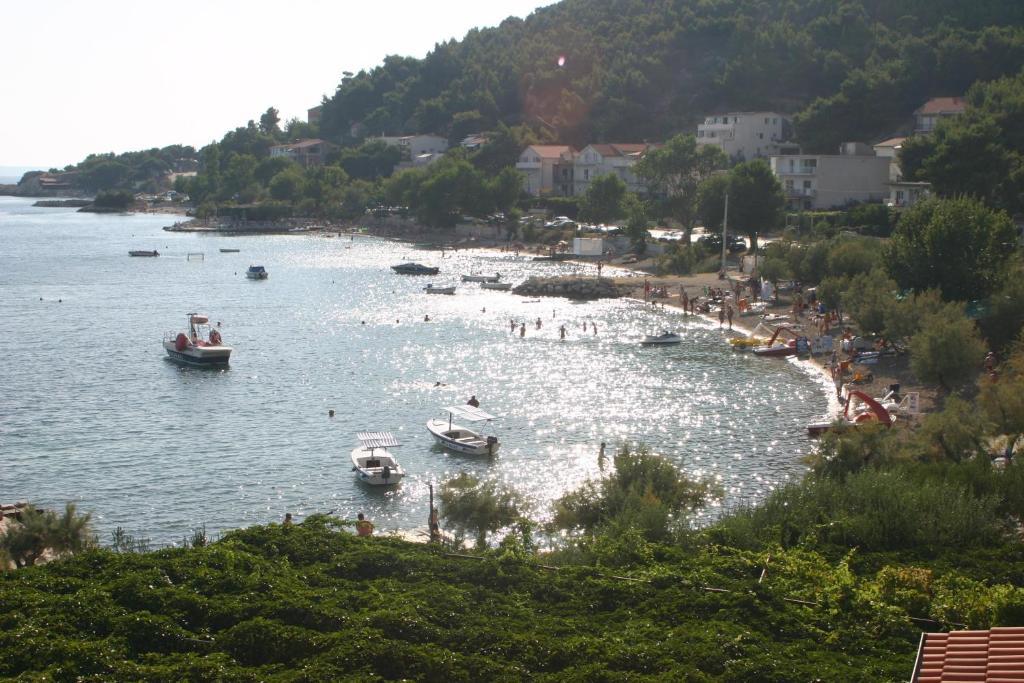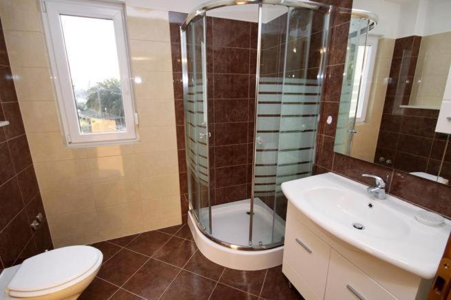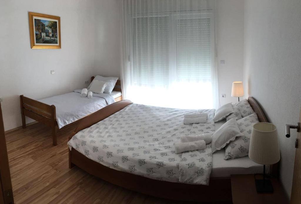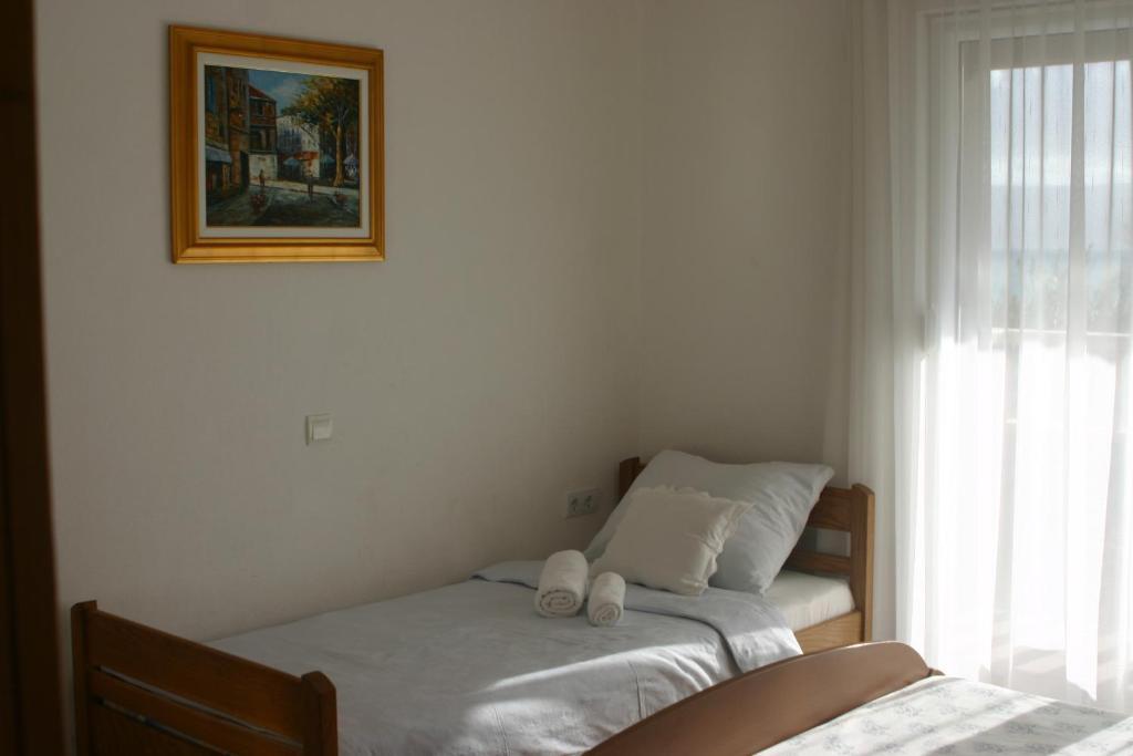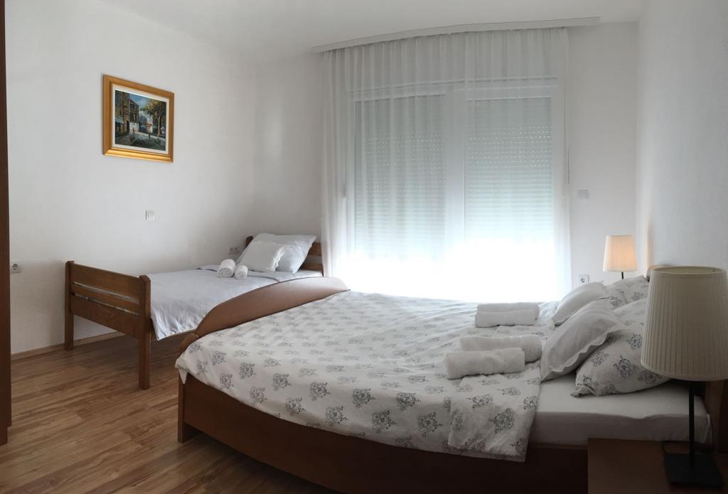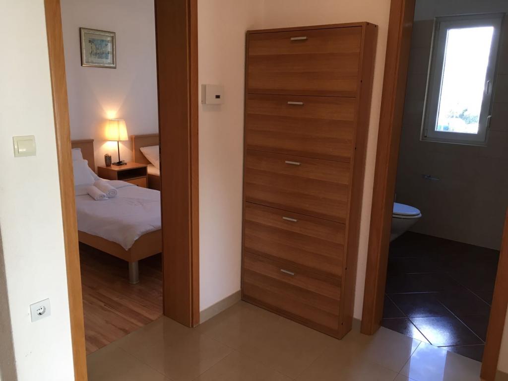 W domu znajdują się dwa mieszkania o powierzchni 75 metrów kwadratowych. Każdy apartament posiada dwie sypialnie, jeden pokój ma dwa łóżka, a drugi trzy łóżka. W przestronnej kuchni z salonem istnieje możliwość noclegu dla dwóch osób na kanapie. W korytarzu znajduje się łazienka z WC i WC. Oba apartamenty posiadają przestronny balkon z widokiem na morze. Na parterze garaże samochodowe. Aby dotrzeć do plaży oddalonej od domu o 150 metrów, należy przejść przez ulicę. W niewielkiej odległości jest do wyboru kilka rodzajów plaż i głębokość morza. Odpowiedni dla dzieci. Na plaży oprócz kąpieli i opalania można wybierać spośród wielu dodatkowych form rozrywki. Odległość do kiosku z chlebem to 50 metrów, sklepów 200 metrów, aw sąsiedztwie kilka rodzajów restauracji.