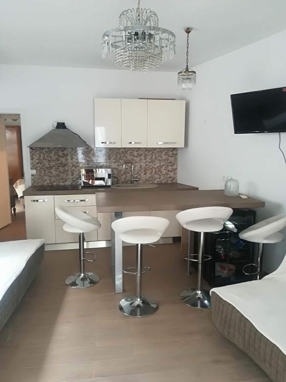 Apartamenty Merion znajdują się w rodzinnym domu w centrum turystycznej miejscowości Duće, znanej z długich, piaszczystych plaż. Dom znajduje się zaledwie 50 metrów od plaży, aw odległości 100m goście mają do dyspozycji całą gamę różnorodnych restauracji, sklepów, piekarni i straganów z owocami. Samo miejsce znajduje się zaledwie 2 km od miasta Omiš i kanionu rzeki Cetina. Oprócz zwykłej oferty turystycznej rzeka oferuje również rafting, canyoning, tyrolkę, czyli przeżycia, po które przyjeżdżają goście z odległych miejsc. Lokalizacja daje możliwość odwiedzenia wielu różnych atrakcji turystycznych, które oddalone są o zaledwie 1-2 godziny jazdy samochodem. Apartament Deluxe i Studio znajdują się na drugim piętrze domu i mają ładny widok na morze, Apartament na parterze na parterze i Apartament z podwórkiem w oddzielnym budynku za domem z prywatnym podwórkiem.