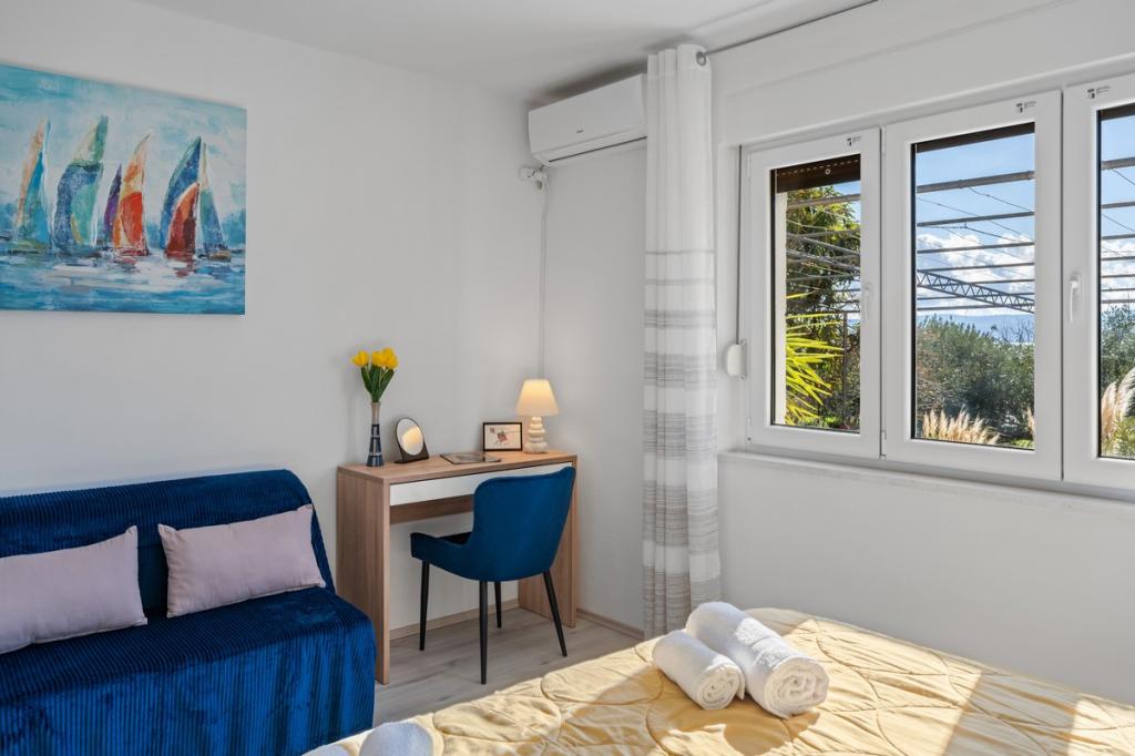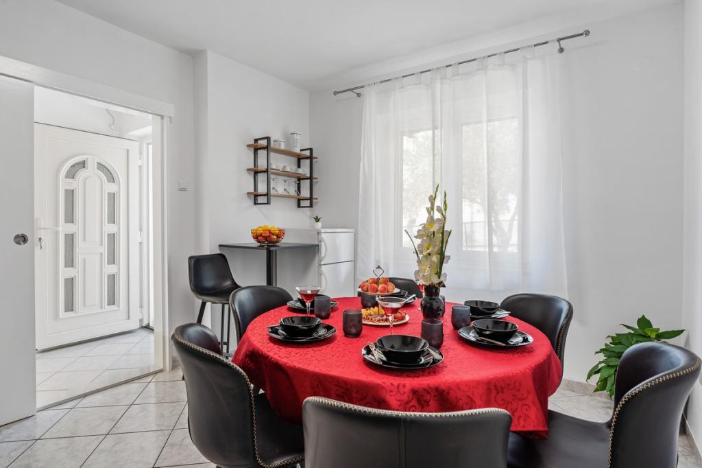 Apartamenty Miroslav Vojnović znajdują się w samym centrum turystycznej miejscowości Duće, będącej częścią riwiery Split-Omis. Dom rodzinny z dużym ogrodem i wspaniałym widokiem na morze. Piękna piaszczysta plaża jest idealna na rodzinne wakacje z dziećmi. Plaża znajduje się zaledwie 50 m od domu. Do dyspozycji Gości jest pięć komfortowych i wyposażonych apartamentów, które zapewnią Państwu poczucie domu podczas wakacji. Przyjazd możliwy jest w każdy dzień tygodnia. Apartamenty dostępne są od godziny 10:00 w dniu przyjazdu. Dzięki temu goście mogą zostać dłużej, a goście mogą dostosować plan podróży do swoich potrzeb. Duży apartament A5 dla 4+2 osób z prywatnym tarasem znajduje się na parterze domu. Inne komfortowe apartamenty A1, A2, A3 i A4 dla 2 osób znajdują się na drugim piętrze domu i wszystkie są wyposażone w klimatyzację. Oferujemy również możliwość łączenia mniejszych apartamentów w zależności od potrzeb gościa. Bliskość większych centrów miast (Split 20 km, Omiš 3 km).