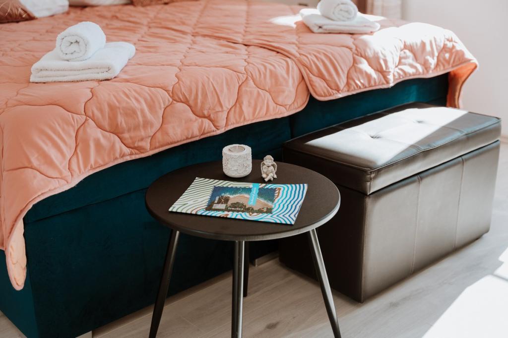 Czytaj więcej KwaterPrzyjazd i wyjazd możliwy jest w każdy dzień tygodnia. Zameldowanie możliwe jest od godziny 10:00 w dniu przyjazdu. Wymeldowanie powinno nastąpić do godziny 10:00 w dniu wyjazdu. Zadatek pobierany w momencie rezerwacji ma stałą kwotę 200 EUR za każdy apartament i jest płatny na rachunek bankowy. Pozostała część kwoty płatna jest po przyjeździe wyłącznie gotówką. Cena uzależniona jest od terminu, ale także od ilości osób. Aby uzyskać dokładną cenę, skontaktuj się z nami e-mailem.