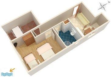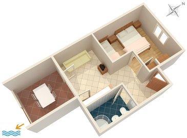 Dom w cichej ślepej ulicy bez ruchu. Jesteśmy 150m od plaży. Plaża jest piaszczysta, z dużą ławicą, idealna dla dzieci. Centrum Omis znajduje się 15 minut spacerem od hotelu, a Split oddalony jest o 25 km.