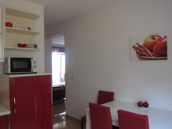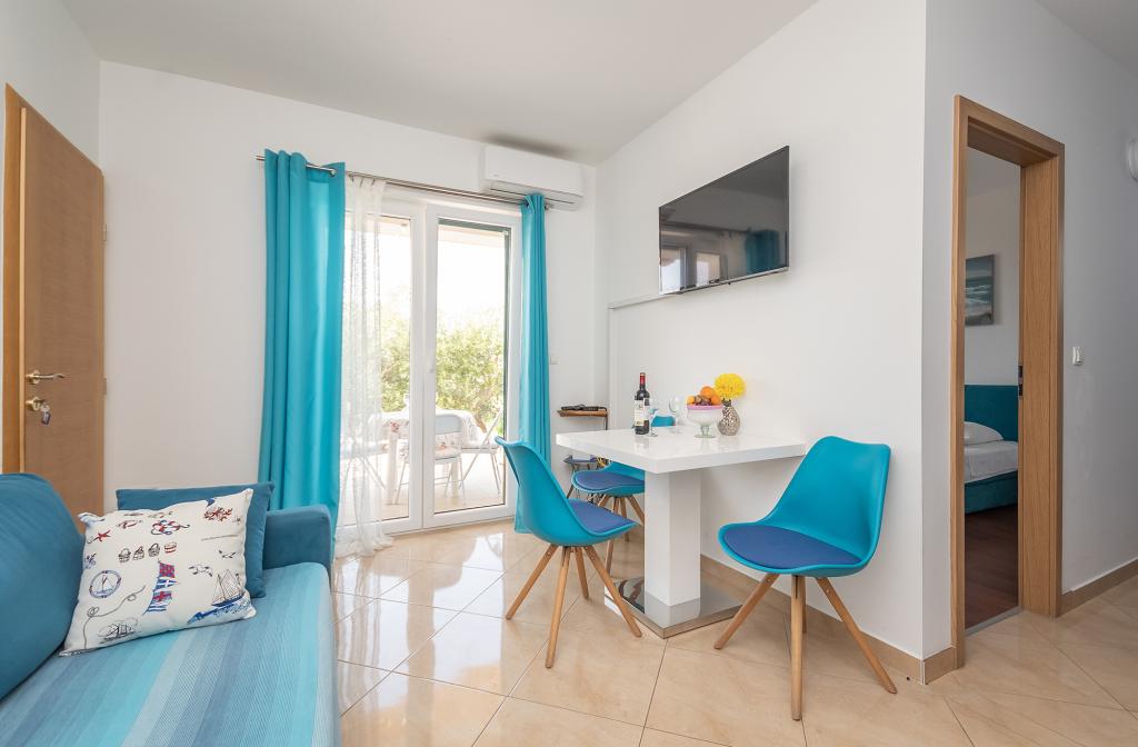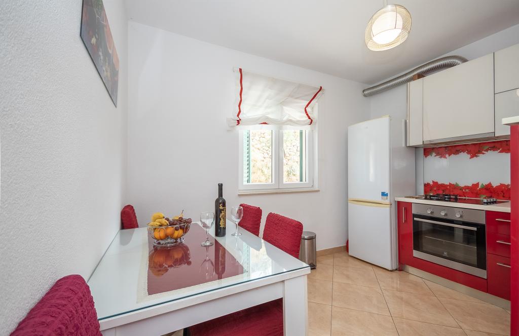 Apartamenty Rejo znajdują się w małej miejscowości Dugi Rat, na Riwierze Omiš, w cichej okolicy z pięknym widokiem na morze i wyspą Brac. Od centrum tego miejsca jesteśmy około 400 m od hotelu, a wszystkie obiekty turystyczne znajdują się w bizini. Mamy 2 apartamenty do wynajęcia. Każdy apartament jest odpowiedni dla maksymalnie 4 osób, najbardziej odpowiedni dla 2 osób dorosłych i 2 dzieci. Oba apartamenty znajdują się na pierwszym piętrze. Każdy apartament posiada 1 sypialnię z dużym podwójnym łóżkiem, pokój dzienny z rozkładaną sofą dla 2 osób, kuchnię, łazienkę, balkon z widokiem na morze i taras na północnej stronie domu.