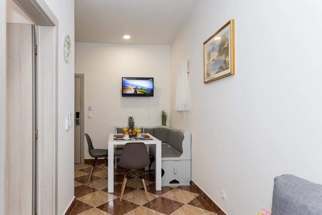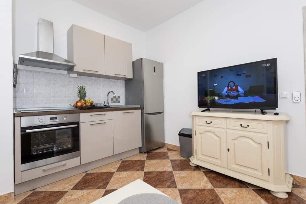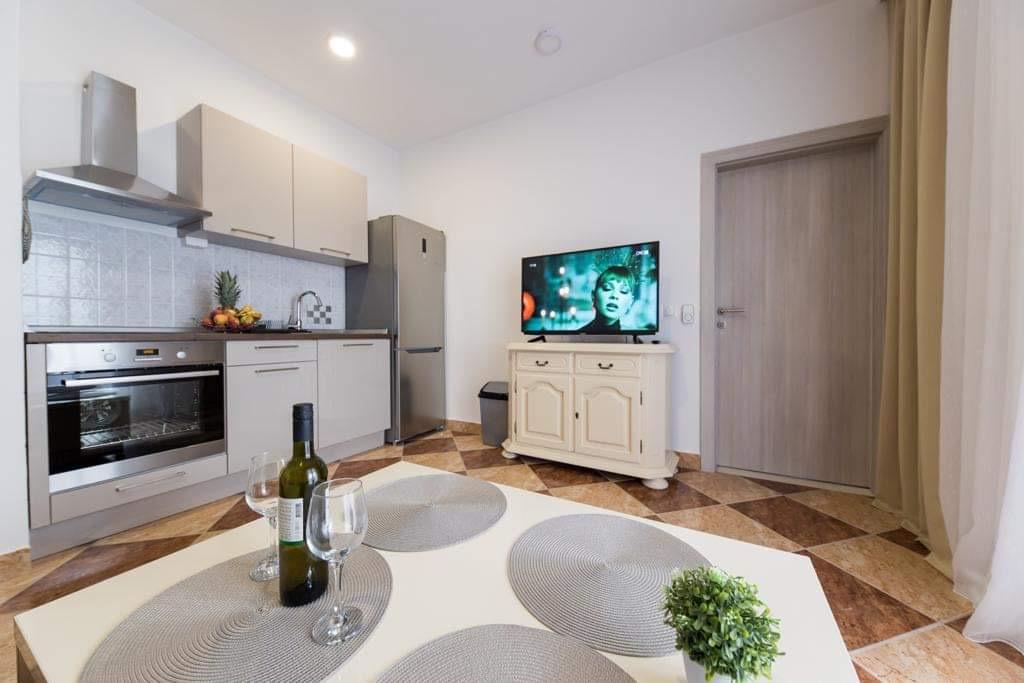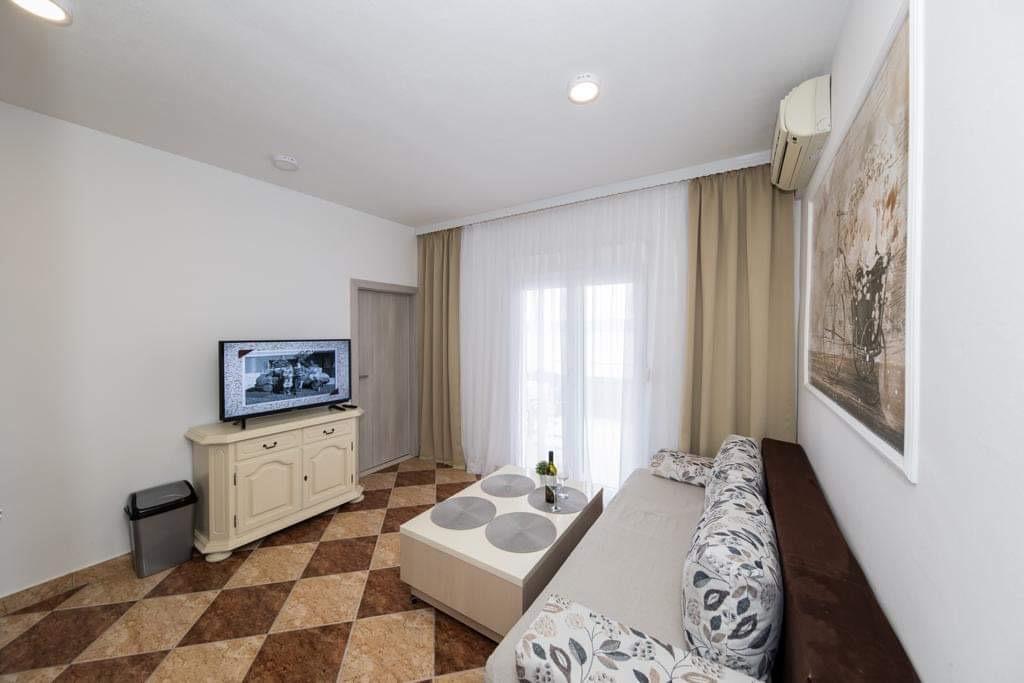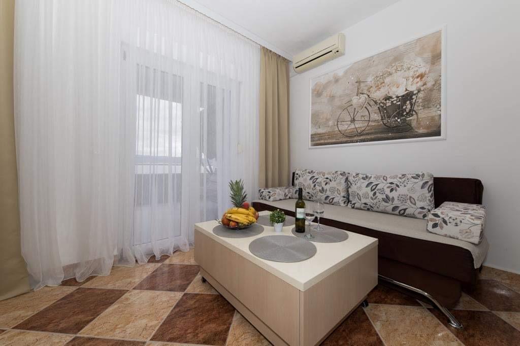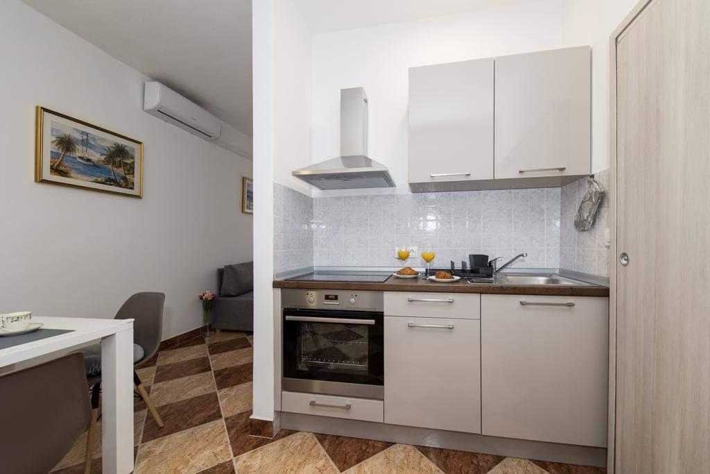 Apartamenty Kristal znajdują się w Duće. Całkowicie odnowiony i przestronny zapewni komfortowy nocleg i wypoczynek. Ten apartament obejmuje sypialnię, wyposażoną kuchnię, telewizor z płaskim ekranem, klimatyzację i przestronny taras. Do mieszkania przynależy również 1 łazienka. Goście mają do dyspozycji grill na terenie domu, prywatny parking oraz bezpłatny bezprzewodowy dostęp do Internetu. Mieszkanie znajduje się 100m od plaży, na której znajduje się restauracja i kawiarnia. W centrum Dugi Rat oddalonego o 500m znajdują się supermarkety, przychodnia, apteka, kantor, poczta i kawiarnie. Split oddalony jest od apartamentów o 18 km, a Makarska – o 34 km. Lotnisko w Splicie oddalone jest od obiektu o 30 km.