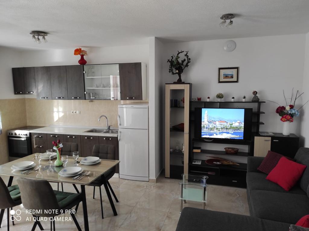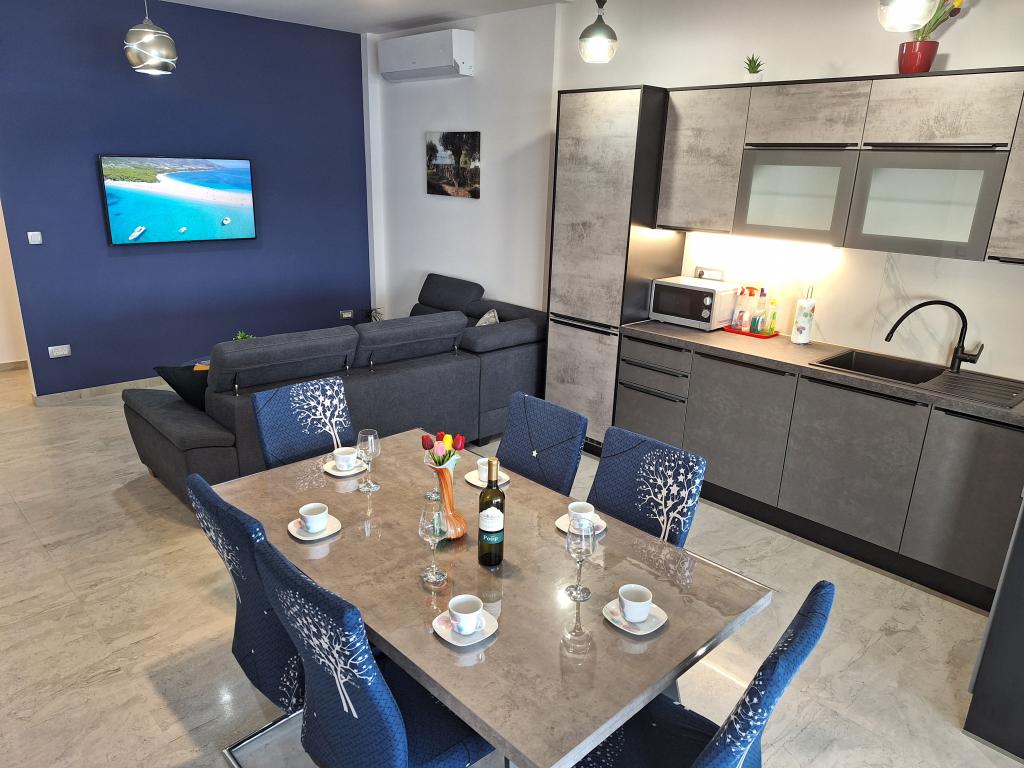 Apartamenty Mušac znajdują się w Dugi Rat - Duće, z pięknymi plażami i mnóstwem słońca, zaledwie 25 km od Splitu lub Makarskiej i 5 km od Omiša! Pierwszy apartament dla 6 osób znajduje się na pierwszym piętrze (parterze) domu. Składa się z dwóch dużych sypialni, dwóch toalet, salonu, kuchni i tarasu. Dostępny jest także grill. Drugie mieszkanie (nowe, wybudowane w 2024 roku na poddaszu) dla 7 osób znajduje się na ostatnim piętrze domu rodzinnego. Składa się z trzech pokoi, salonu, kuchni, dwóch toalet i balkonu. Apartamenty znajdują się 100 metrów od plaży. Z balkonu roztacza się piękny widok na Morze Adriatyckie i wyspę Brač. Przed domem znajdują się dwa miejsca parkingowe dla naszych gości na każdy apartament. Sprzątanie końcowe i opłata klimatyczna są wliczone w cenę. W samym centrum Dugi Rat (zaledwie 10 minut spacerem) znajdują się supermarkety, kawiarnie, poczta, piekarnia, kościół, kantor... 5 km od Dugi Rat jest Omiš i 20 km od Splitu. Omiš znany jest z rzeki Cetina (rafting, tyrolka).
