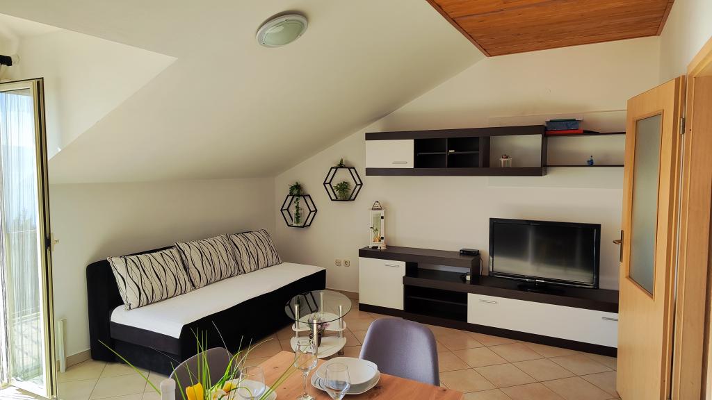 Mieszkaliśmy w apartamencie A2+2 OD 08-15.08.2024. Ładnie, schludnie i czysto. Identyczny jak w reklamie. Nowocześnie urządzone. Przed apartamentem znajduje się duży taras, który zapewnia cień przez cały dzień. Piękny trawnik, zieleń z kwiatami i palmą, naprawdę ładnie to wygląda. Oczywiście widok na morze Gospodarze bardzo mili i mili. Dostępne, jeśli czegoś potrzebujesz, a jednocześnie dyskretne. Plaża jest piękna i czysta, jest zarówno słońce, jak i cień. Może wybrać to, co mu się podoba. Trochę czasu zajęło nam przyzwyczajenie się do chodzenia pod górę po powrocie z plaży, ale są skróty, więc i to opanowaliśmy, Lokalizacja jest świetna, do Splitu i Omiša można dojechać w 15-20 minut. Autobusem lub samochodem. Rekomendacja dla restauracji Terapia na plaży.