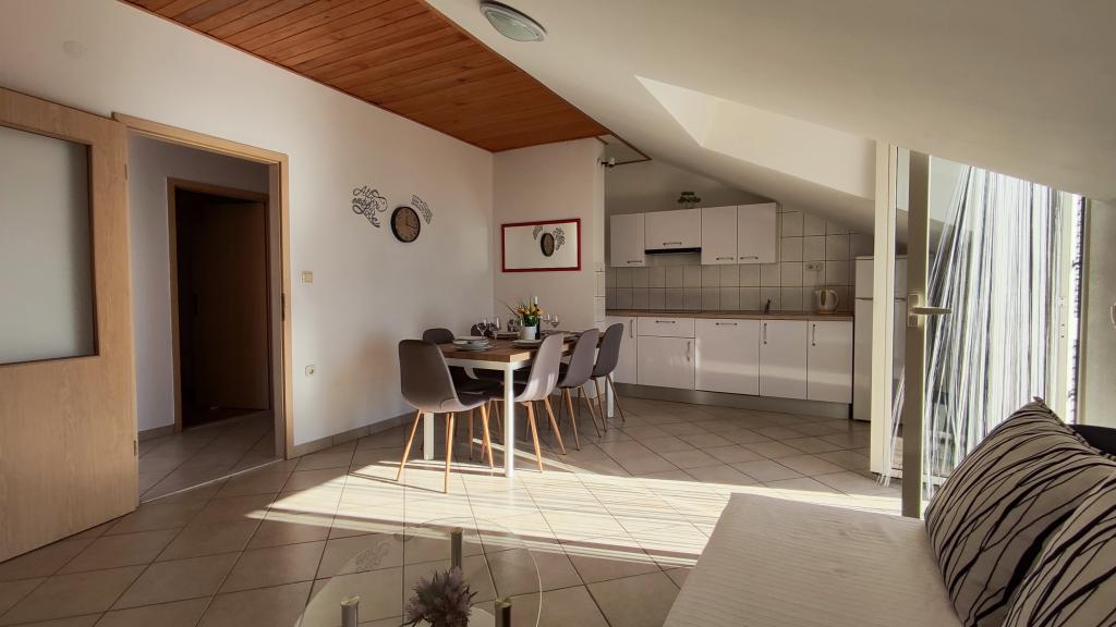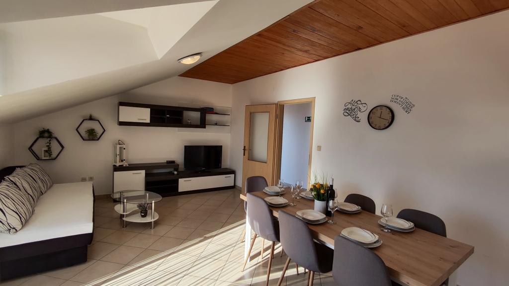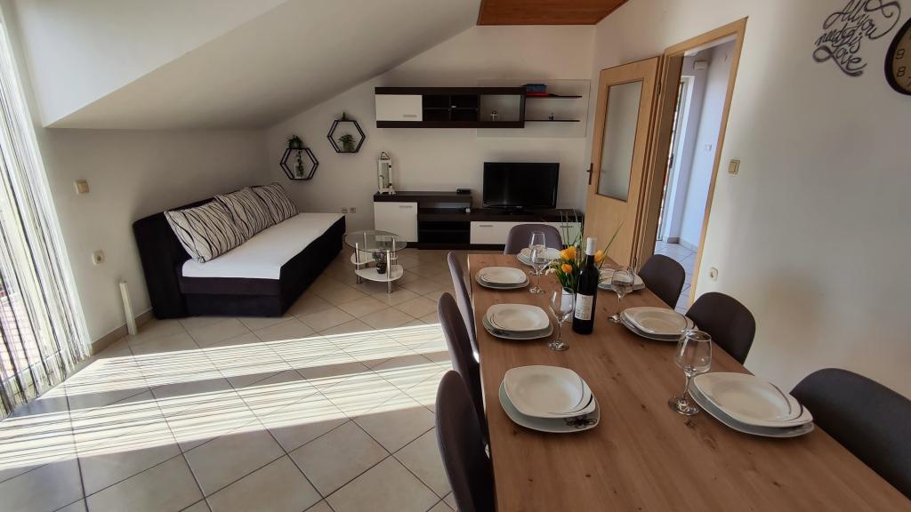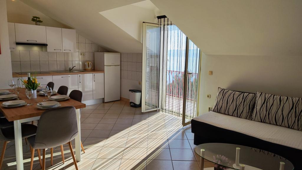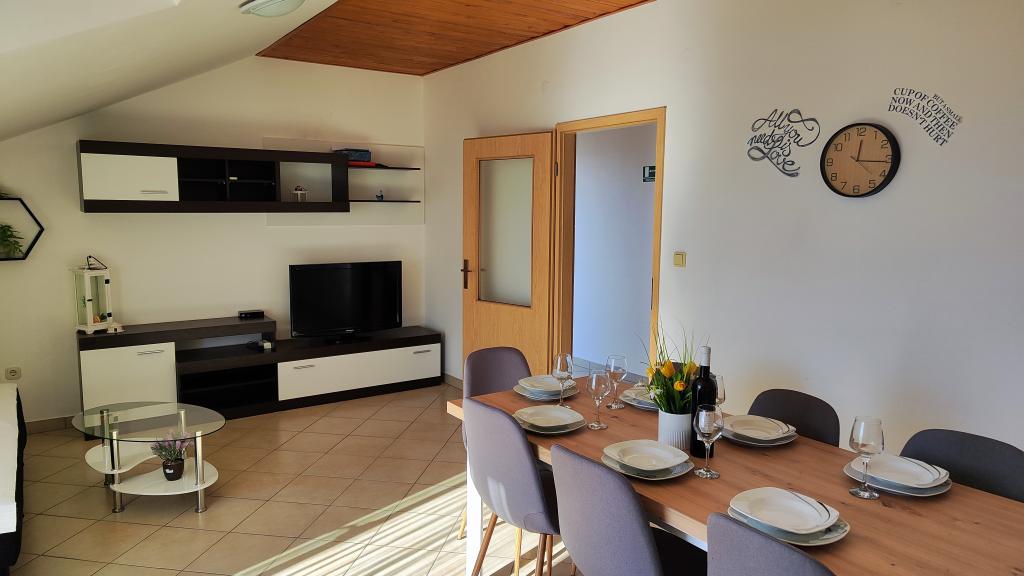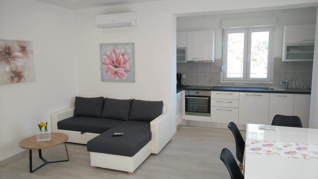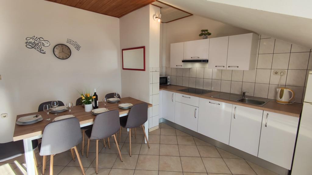 Apartament bardzo dobry dla rodziny z jednym dzieckiem, bardzo czysty, komplet pościeli i ręczników, wymieniony na czyste po 7 dniach. Bardzo dobrze wyposażona kuchnia, świetny taras. Gospodarze bardzo mili ludzie. Po angielsku mówią dzieci gospodarzy. Brak klimatyzacji może być uciążliwy podczas bardzo ciepłych nocy, bo gorace dni i tak się spędza nad morzem. Najbliższa plaża jest kamienista,ale dobre, dogodne dojście deptakiem nad morzem do plazy żwirowej - bardzo dobrej dla dzieci. Miejscowość spokojna, przez co plaże nie przepełnione. Dobre miejsce wypadowe do zwiedzenia Split, Trogir, Omis i Riwiery Makarskiej - wszędzie blisko.