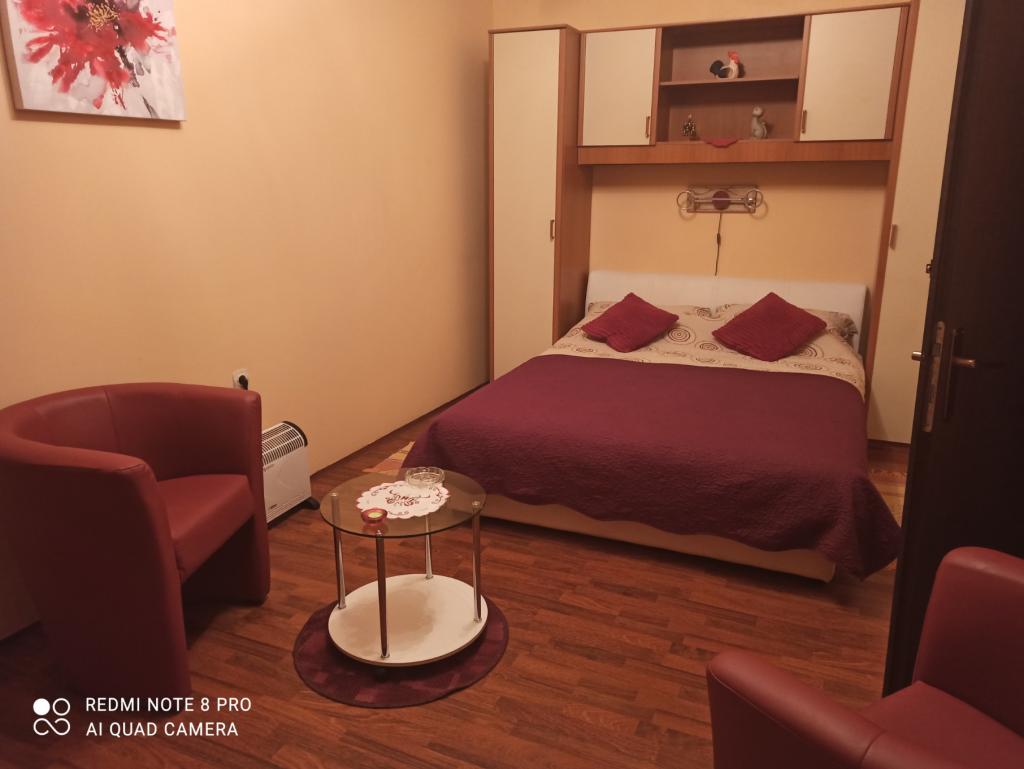 Schludny pokój dwuosobowy dla dwóch osób z łazienką. Apartament dla 4 osób z łazienką i kuchnią. Oddzielne wejście, taras, własne podwórko, cień, centrum Aljmas. Kościół, Dunaj, rynek, wszystko 100 metrów od budynku.