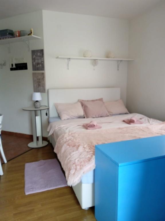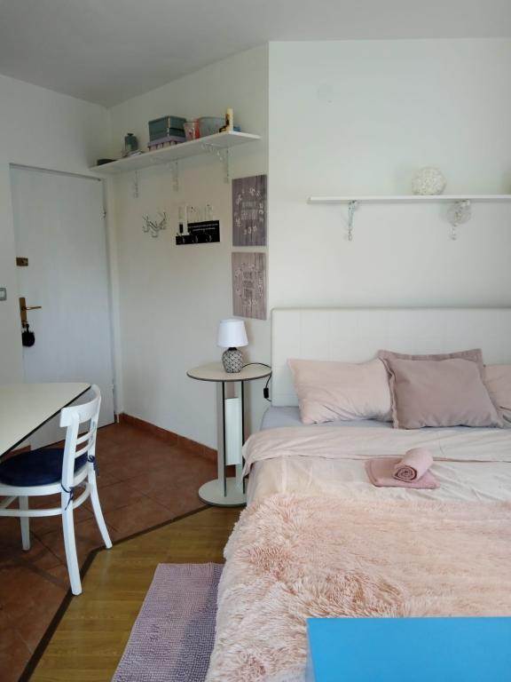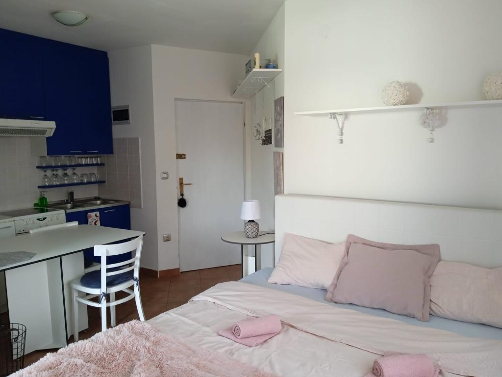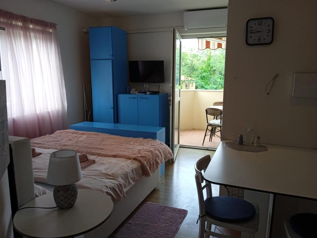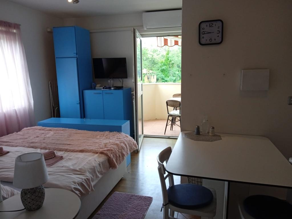 Nowocześnie urządzony apartament typu studio znajduje się blisko morza (350 m), Plodiny (20 m) i dworca autobusowego (300 m). Odległość od Puli wynosi 5 km. Mieszkanie posiada balkon o powierzchni 7 m2 z widokiem na zieleń. Wyposażony jest w klimatyzację, telewizor, kuchenkę indukcyjną, elektryczną i mikrofalową, kuchenkę, pralkę oraz posiada dostęp do internetu.