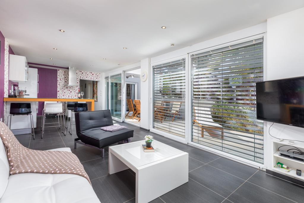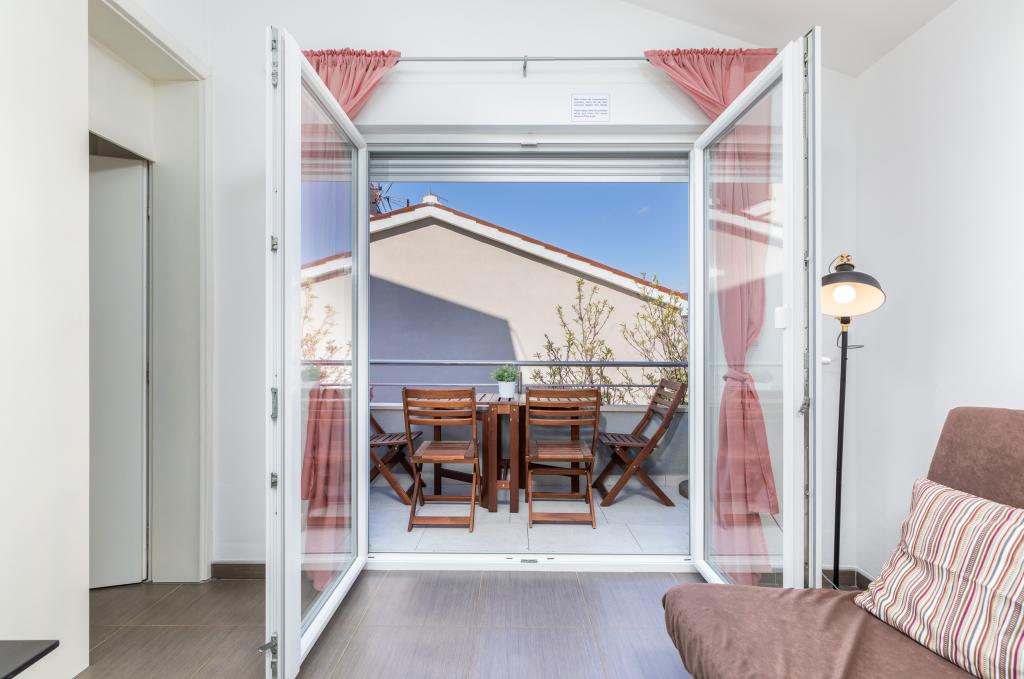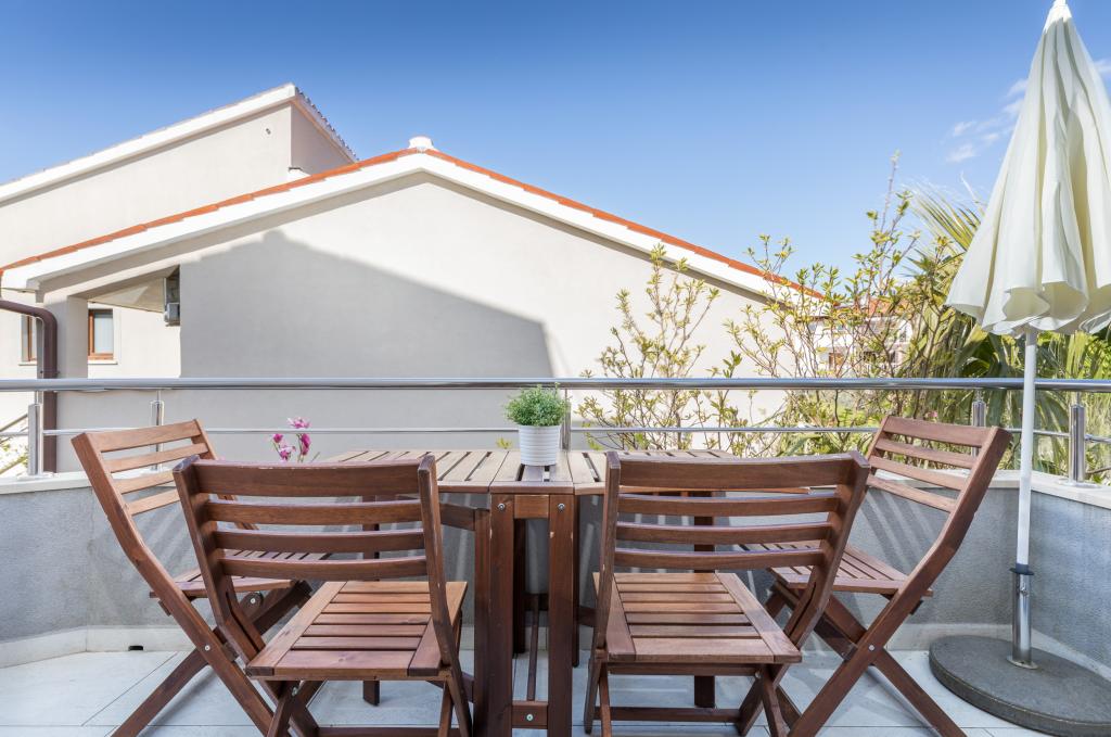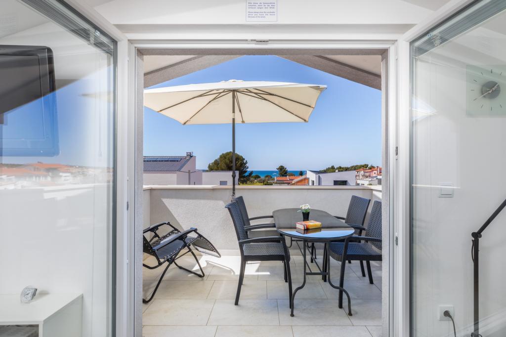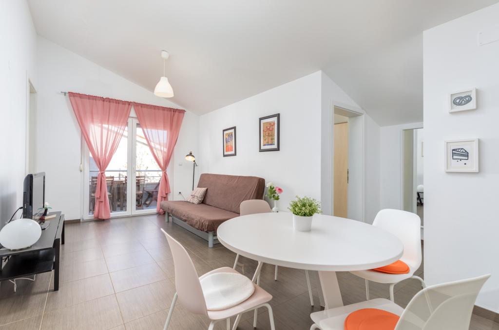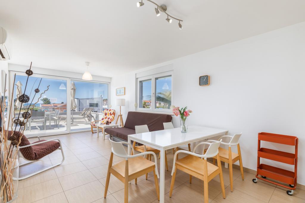 Nowoczesny dom z 5 apartamentami, z widokiem na morze, 200 m od plaży. Każdy apartament posiada miejsce parkingowe przed domem. W pobliżu budynku znajduje się kompletny program niezbędny do przyjemnego wypoczynku. (sklepy, plaża, lekarz, restauracje, bar, stare miasto itp.) Wszystko to w zasięgu kilkuminutowego spaceru.