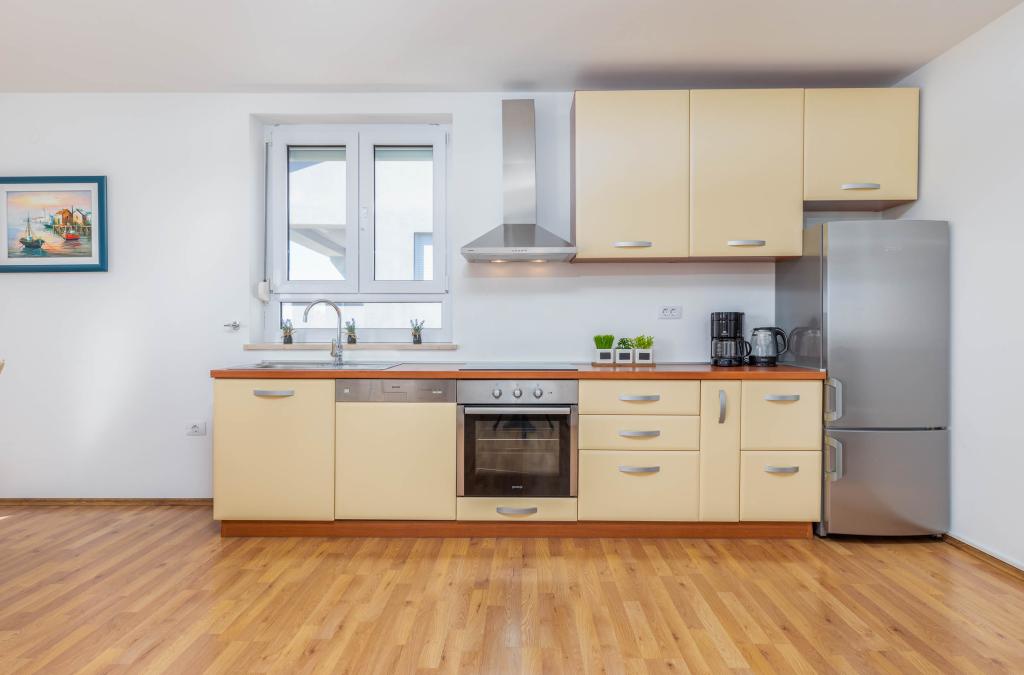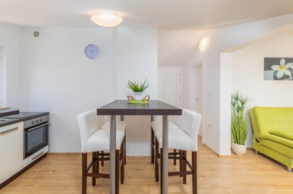 Nowe, komfortowe mieszkania w domu wybudowanym w 2014 roku. Znajdują się zaledwie 800 m od plaży i centrum miasta, w zielonej i spokojnej części Fažany. Położone na pierwszym i drugim piętrze domu rodzinnego zapewniają pełną prywatność oraz możliwość relaksu i wypoczynku. Okolica jest bardzo cicha, w okolicy tylko kilka domów jednorodzinnych. Z drugiej strony niedaleko do plaży i centrum miasta. Najbliższy targ oddalony jest o 5 minut spacerem. W centrum miasta znajduje się wiele restauracji, kawiarni, sklepów, sklepów z pamiątkami, apteka, lekarz, poczta, bank, dworzec autobusowy, bankomaty - wszystko, czego potrzebujesz na idealne wakacje.