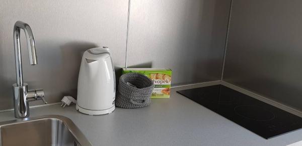 Opłata jest wliczone w cenę.The kitchen is fully equipped with all accessories, dishwasher, 2-pane glass ceramic plate, freezer and fridge. Each apartment has a table and chairs for dining inside and on the terrace. We are very proud to offer beds of very large dimensions of 190x210 with extra quality mattresses and quality bedding, USB charging sockets are next to the bed. Lights have ability to change color and have bluetooth speaker for listening music from mobile phone. Great WI-FI and big screen Android TV with variety of programs from Internet or satelite TV and free Netflix service. Each apartment has a make-up table and chair, but it can be used as a work desk. The bathrooms are equipped with floor mats, towels, toilet paper, hair dryer and First aid box.