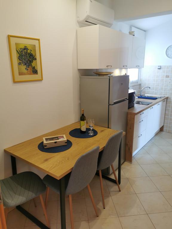 Mieszkaliśmy w apartamencie nr 1. Niedaleko jest plaża i centrum Fažany. Mieszkanie jest zupełnie nowe, znajdują się w nim: dwie sypialnie, pralka w łazience, klimatyzacja, płyta indukcyjna, która jest bardzo łatwa i praktyczna w obsłudze, duży stół na zewnątrz na tarasie, prywatny parking dobrze zadaszony pergolą. Pani Irena zostawiła nam napoje w lodówce oraz całą pościel i ręczniki. Irena była bardzo miła i gościnna, udzielała nam rad i była dostępna na wszystko. Gorąco polecam te noclegi!
