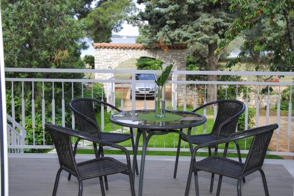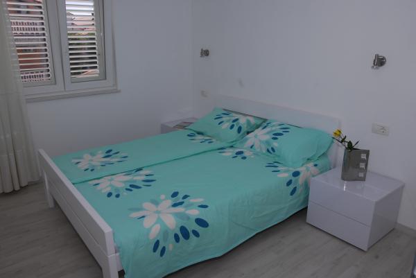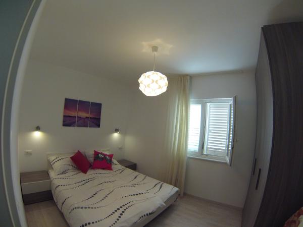 3 całkowicie nowo wybudowany i nowoczesne apartamenty znajdują się w pierwszym rzędzie do morza, znajduje się w spokojnej okolicy, Fazana, w zieleni, z idyllicznym widokiem na morze i Wyspy Brijuni. Znajdują się one w odległości zaledwie 50 metrów od plaży. Z przodu jest chodnik i trawnik i plaża. Parking znajduje się przed domem. Samochód jest używany tylko do podróży, gdyż wszystko to jest w bezpośrednim sąsiedztwie. Apartamenty są odpowiednie dla rodzin z dziećmi, ponieważ jest w pobliżu plac zabaw dla dzieci (60 mln), a ze względu na odległość od dróg. W bezpośrednim sąsiedztwie znajdują się obiekty sportowe; siatkówka plażowa, żeglarstwo, windsurfing, kolarstwo górskie szlaków ... Wszystkie trzy apartamenty posiadają duże tarasy (20 m2) z widokiem na morze.