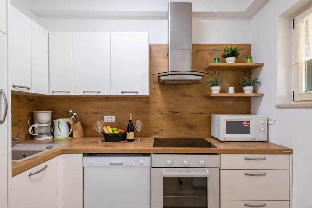 Apartament wyposażony jest we wszystko, czego potrzebujesz. Do plaży można dojść pieszo w 10 minut. Warto zwiedzić okolicę. Właściciele są bardzo serdecznymi i troskliwymi ludźmi, zawsze dostępnymi, aby odpowiedzieć na pytania lub rozwiać wszelkie wątpliwości. Kiedy Nada coś upiecze, Zdravko przynosi coś jeszcze, łącznie z winem i travaricą. Nawiasem mówiąc, Zdravko mówi bardzo dobrze po niemiecku i zawsze daje wskazówki dotyczące wycieczek lub ... Miło jest usiąść na zadaszonym tarasie. Wszystko w domu i wokół niego jest bardzo dobrze utrzymane. Na rowerach można wybrać się do piekarni lub supermarketu.