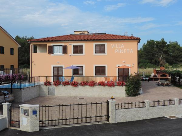 Villa Pineta, położona w miejscowości Fažana, w pobliżu Parku Narodowego Brijuni, w pobliżu obozu Pineta, zaledwie 650 metrów od plaży, oferuje niezapomniane wakacje w 5 nowocześnie wyposażonych i komfortowych apartamentach. Willa z widokiem na morze oferuje relaks, przyjemność ze świeżego morskiego powietrza i korzyści z pobliskiego lasu sosnowego, rekreacji i aktywnego wypoczynku. Apartamenty są klimatyzowane, z bezpłatnym dostępem do Internetu i telewizją satelitarną. Dla każdego mieszkania przewidziane są dwa miejsca parkingowe. Parking jest również objęty nadzorem kamer bezpieczeństwa.