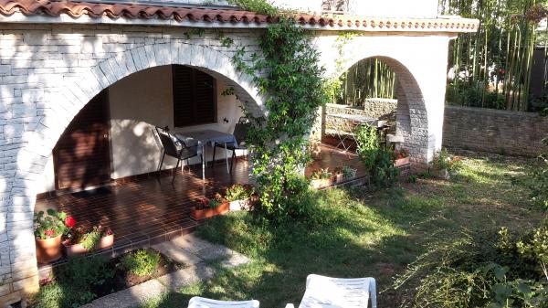 Willę wybudowano w stylu Istrii z wieloma kamiennymi detalami. Każdy apartament posiada osobne wejście, zadaszony taras, klimatyzację, telewizję satelitarną, bezprzewodowy dostęp do Internetu, a także resztę wyposażenia dodatkowego. Hotel otoczony jest piękną przyrodą i niekończących się winnic, czereśnie, figi i migdały. Istnieje prywatny ogród do opalania, gry lub grilla. Posiadamy własny parking, a pierwsza plaża są bardzo blisko, zaledwie 200 m. Nasza oferta obejmuje również masaże i wycieczki łodzią jak dodatkowe usługi. Villa Adriana znajduje się w Funtana, małej wiosce rybackiej znanej z śródziemnomorskim uroku i piękna. Sezon pływacki trwa od maja do końca października. Funtana ma bogatą kuchnię, coś, co sprawia, że bardzo dobrą reputację. Istnieją również liczne obiekty rekreacyjne sporty wodne, tenis, piłka nożna, golf, itd Latem wiele imprez, festiwali wędkarskie, koncerty i wystawy. Znajdujemy się w cichej i spokojnej okolicy!