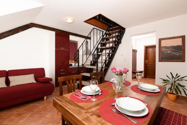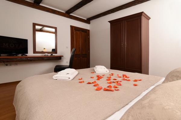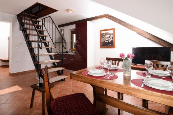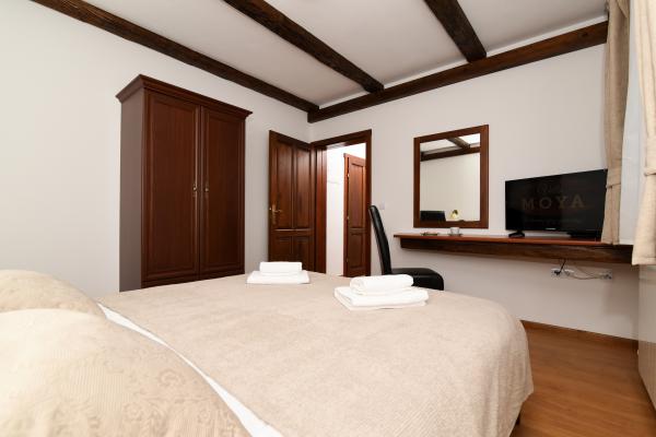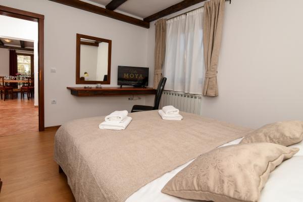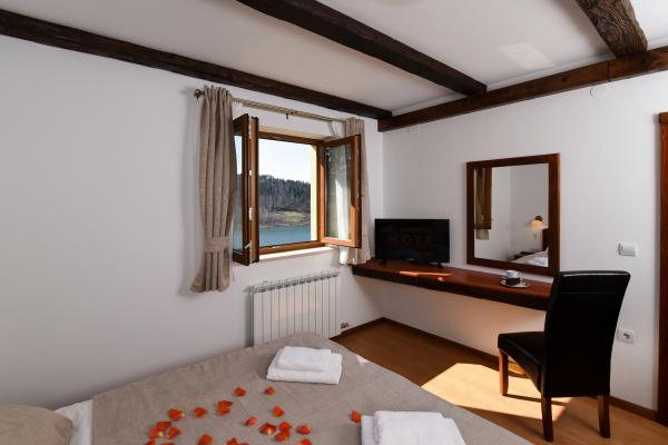 Blok mieszkalny \ Villa MOYA \, położone nad jeziorem Bajer z niepowtarzalnym widokiem na jezioro i góry składa się z sześciu apartamentów, każdy dla dwóch osób i dwóch dodatkowych łóżkach. Apartamenty składają się z jednej lub dwóch sypialni, łazienki, przedpokoju, dużego pokoju dziennego zw pełni wyposażoną kuchnią, balkonem, bezpłatnym bezprzewodowym dostępem do Internetu, telewizję satelitarną, parking. Apartamenty urządzone są w ciepłych kolorach ziemi, ręcznie robione meble i naturalnych materiałów, wszystko czego potrzebujesz na niezapomniane wakacje. Budynek Villa MOYA na parterze ma miejsca dla spotkań towarzyskich lub dzieci, biblioteka, ognisko, basen, duży taras z leżakami, spa z jacuzzi, sauny i siłowni. Możemy pomieścić 2-20 osób. \ Villa Moya \ położony w doskonałej lokalizacji w samym sercu Gorski Kotar, powyżej jeziora Bajer, 700 m od centrum Fu, 25min jazdy do wybrzeża Adriatyku i plaży, 30 minut od miasta Rijeka i 1 godziny od Zagrzebia. Witamy!