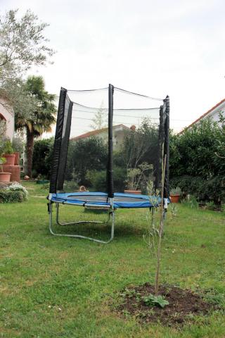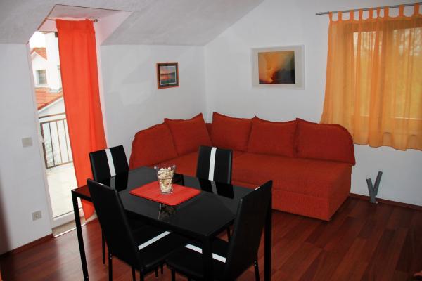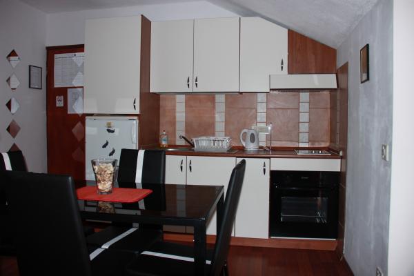 Dom położony jest w spokojnej okolicy, z dużym ogrodem, pełnym zieleni i stanowi idealne miejsce na odpoczynek i relaks. Na dziedzińcu znajduje się kabina prysznicowa, grill i taras dla gości. Również w ogrodzie mamy zjeżdżalnia i trampolina dla naszych najmłodszych gości. Mamy dwa-osobowe apartamenty z dwoma dostawkami znajdują się na piętrze domu. Każdy apartament posiada miejsce parkingowe, klimatyzację, telewizor (telewizja satelitarna), bezpłatny dostęp do Internetu i innych urządzeń, aby pomieścić czteroosobową rodzinę. Oprócz relaksu, spacer i pobyt w przyrodzie karj jest idealny dla kolarstwie szosowym i brtsko. Jak widać na putokazau w galerii istnieje szereg oznakowanych ścieżek rowerowych.