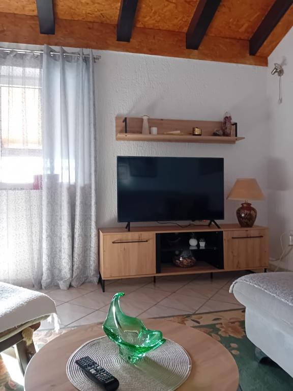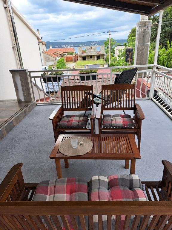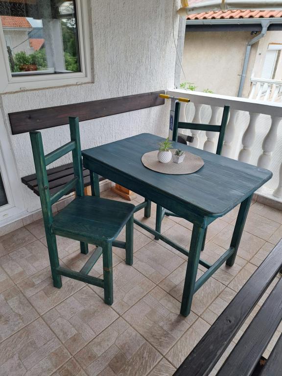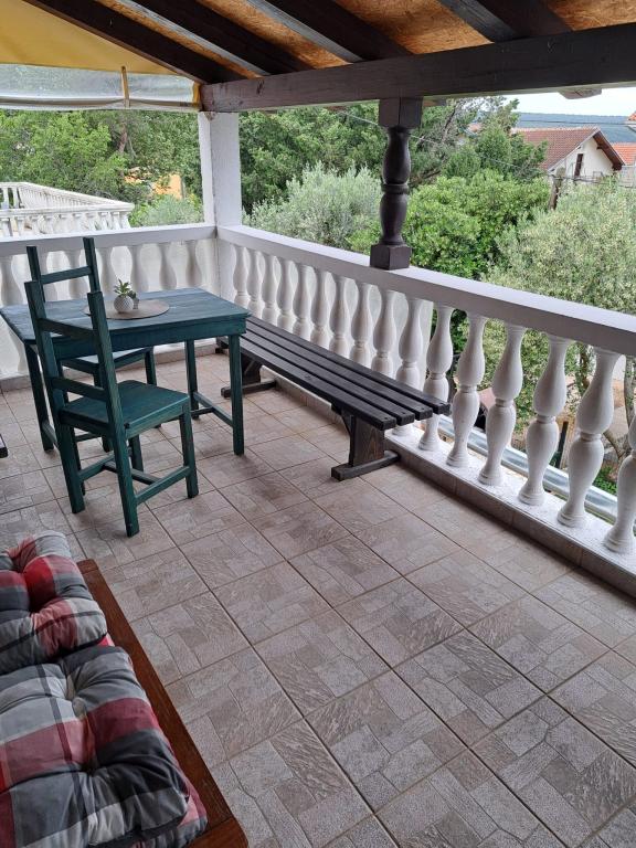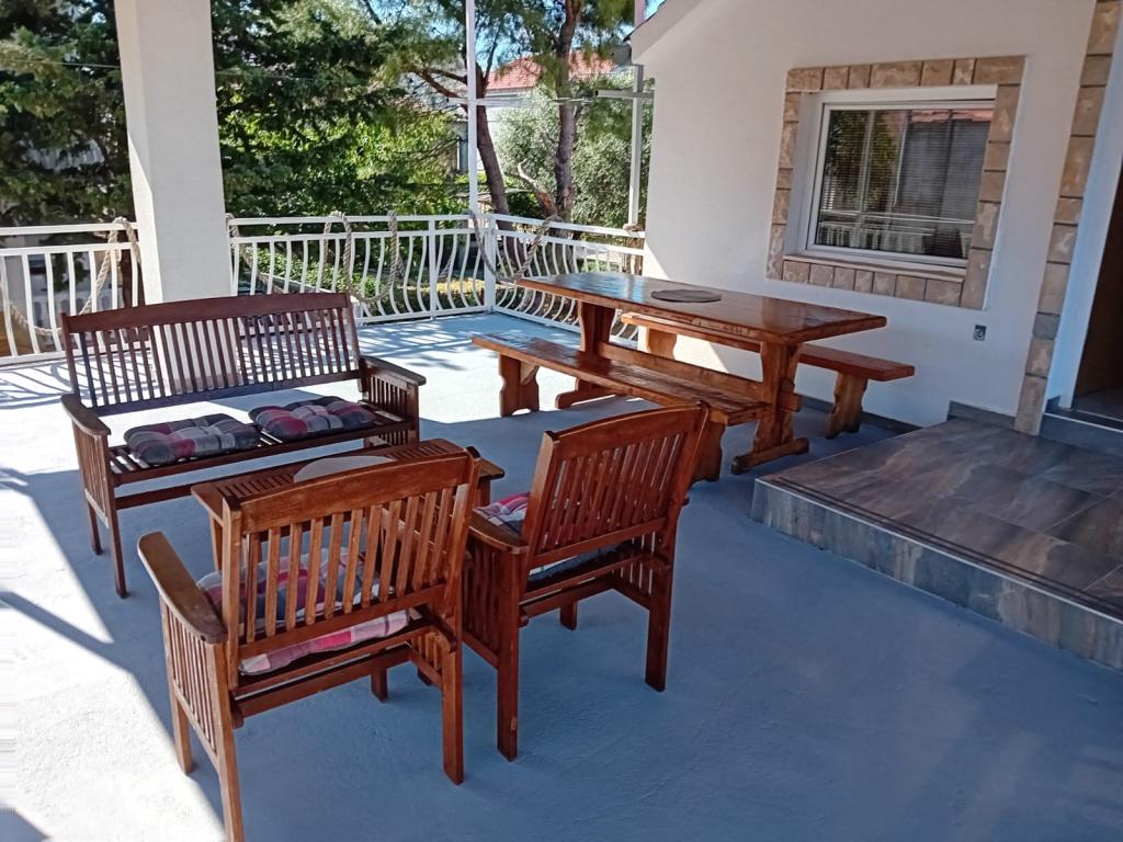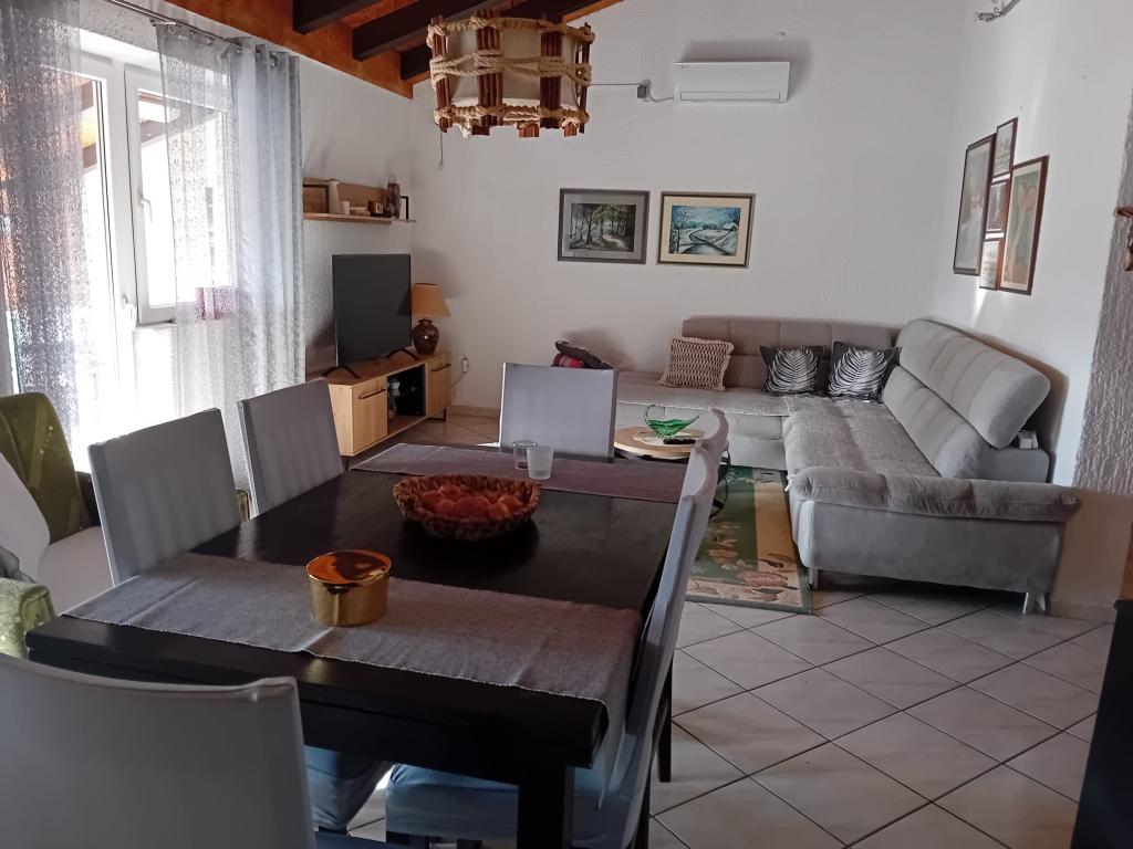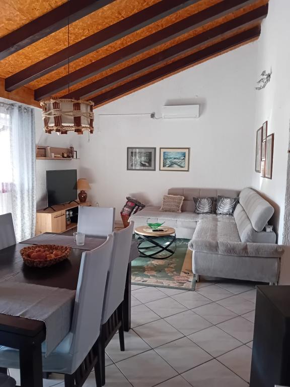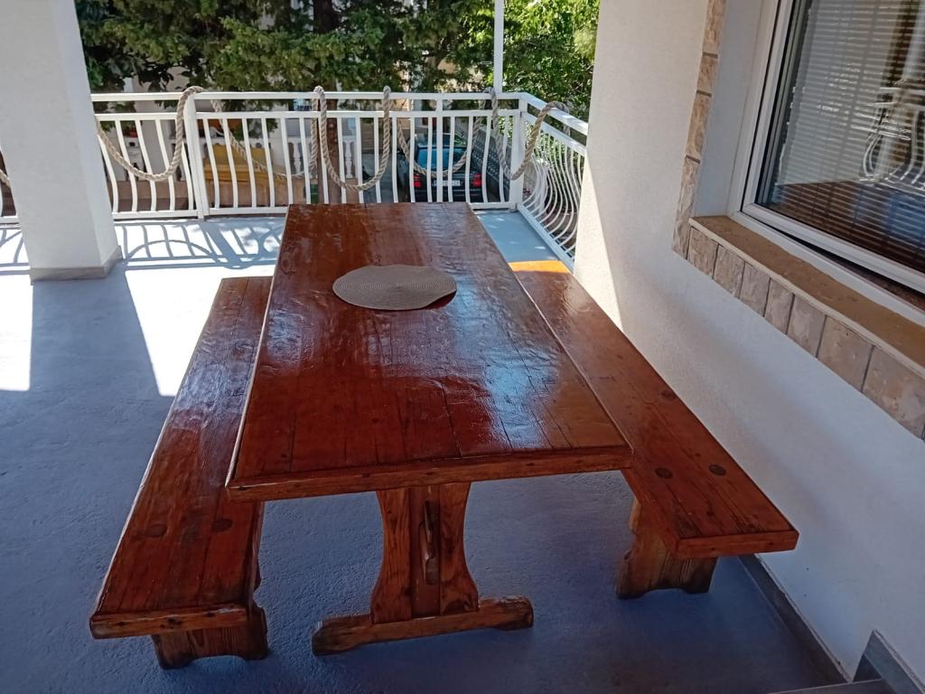 Apartamenty znajdują się na parterze, która jest pierwsza ulica do morza. Są one wyposażone w sprzęt AGD (lodówka, kuchenka, piekarnik. Mikrofalówka, naczynia i sztućce), TV, parking, nie są klimatyzowane. Każdy ma swój własny taras z widokiem na okolicę. Możliwość korzystania z grilla podwórku. Apartamenty są odpowiednie dla małej rodziny lub pary. Zwierzęta domowe są za niewielką opłatą. Ręczniki i pościel zmieniane są raz w tygodniu. 50m od morza, 200m od centrum miasta i pierwszego sklepu natychmiast po drugiej stronie ulicy. Mimo, że znajduje się przy głównej ulicy, ukrytych tarasami i drzew oliwnych, granatu.