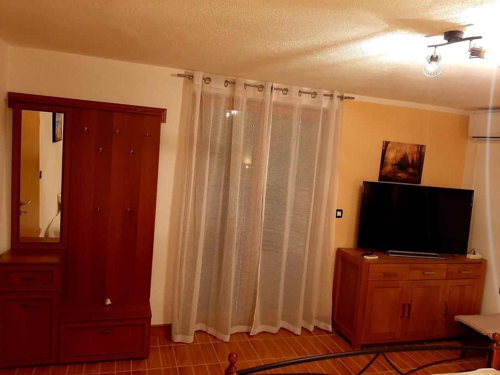Powierzchnia mieszkania wynosi 54 m/2. Składa się z przestronnego pokoju z podwójnym łóżkiem, fotela, który może służyć jako łóżko oraz łóżka dla jednej osoby we wspólnym pokoju. Główna sypialnia prowadzi do łazienki z prysznicem, bidetem i toaletą. Jadalnia i kuchnia znajdują się w jednym przestronnym pomieszczeniu. W kuchni znajduje się płyta indukcyjna, piekarnik z termoobiegiem, kuchenka mikrofalowa, ekspres do kawy i toster. W jadalni znajduje się sofa, którą można rozłożyć i pełnić funkcję łóżka do spania. Zadar oddalony jest od obiektu o 27 km, a lotnisko – o 23 km.