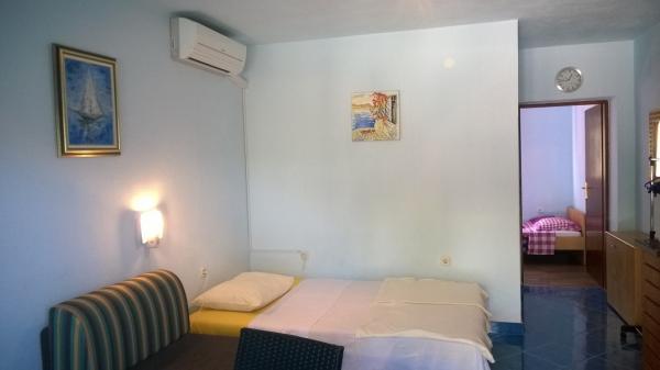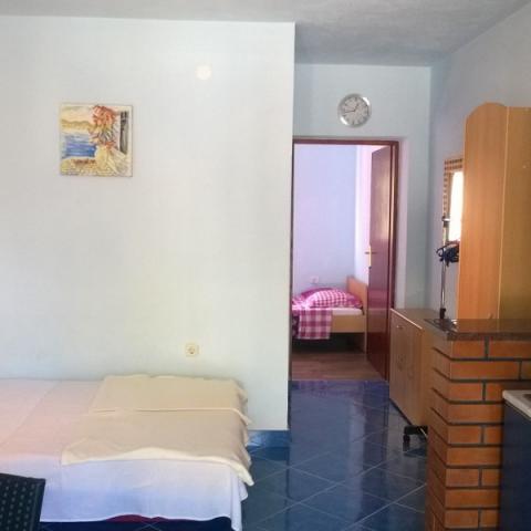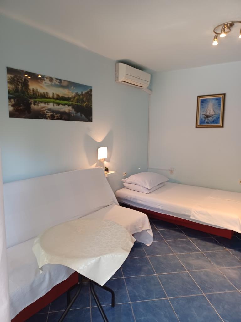 Nowo wyremontowany dom, dwa apartamenty, angielski ogród, ogród, ogród pełen zieleni, miejsce parkingowe na podwórku. Powierzchnia apartamentu wynosi 40 metrów kwadratowych. m. taras ma 20 metrów kwadratowych Każdy apartament ma osobne wejście i oddzielny zadaszony taras z widokiem na morze, Velebit, ogród i ulicę, Niebieskie mieszkanie: salon, sypialnia. kuchnia w salonie, łazienka z WC. Salon: podwójne łóżko oraz dodatkowe łóżko. Kuchnia, - w pełni wyposażona. Sypialnia, - ma dwa łóżka pojedyncze Dunja: salon, - podwójne łóżko oraz dodatkowe łóżko; Kuchnia, - oddzielona ekranem w pełni wyposażonym; Sypialnia, - podwójne łóżko dla dwóch osób. Oba apartamenty mają oddzielny prysznic na zewnątrz i wspólny grill, klimatyzację i nieograniczony dostęp do Internetu w ramach ceny.